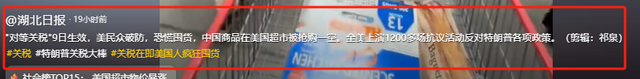 【2】2025年4月6日发布 官方媒体 湖北日报《"对等关税"9日生效,美民众破防,恐慌国货,中国商品在美国超市被抢购一室。全美上演1200场抗议活动反对特朗普各项政策剪辑:祁泉)#关税 #特朗普关税大棒 #关税在即美国人疯狂国货》