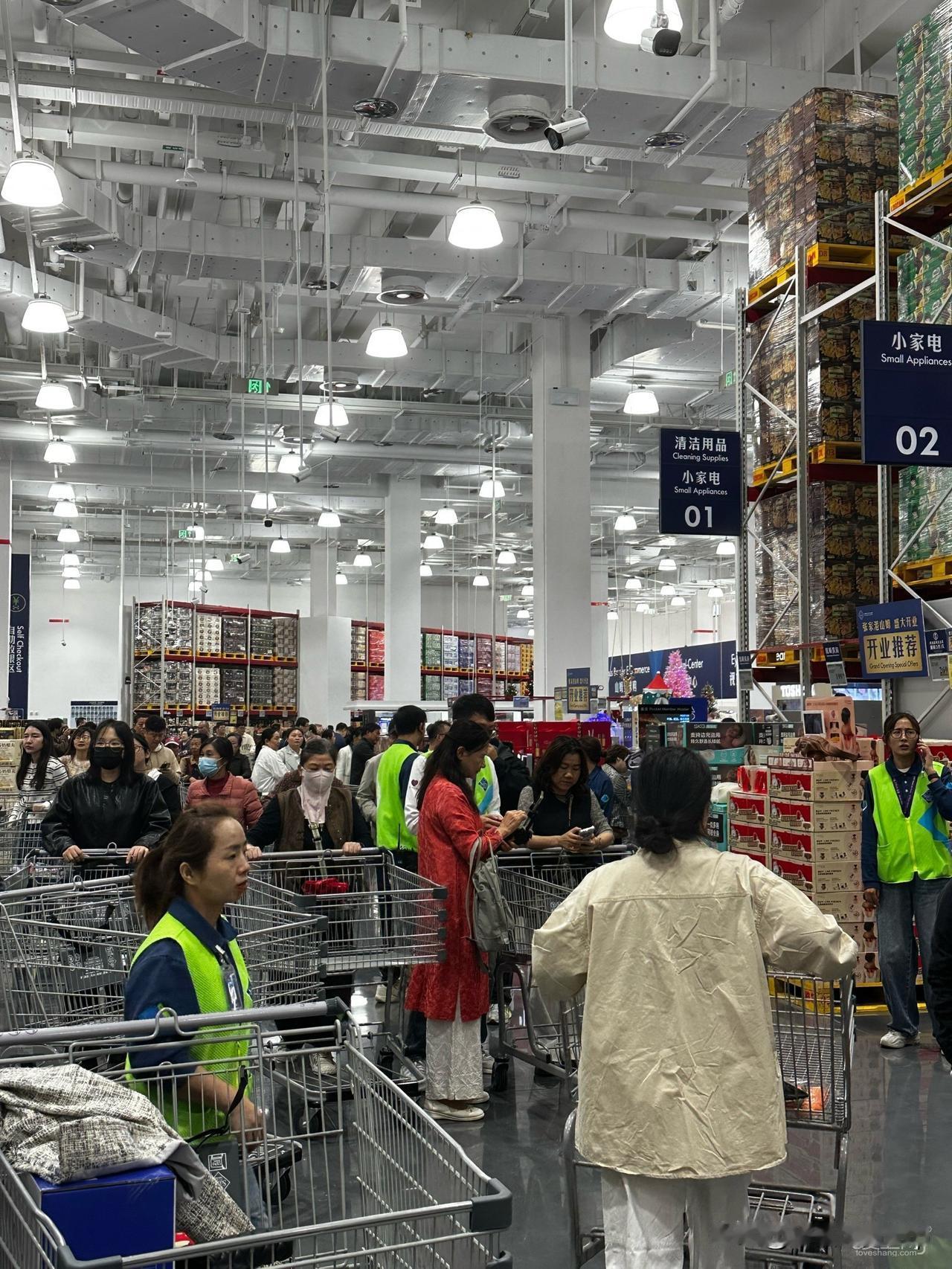 张家港山姆超市开业,人气异常火爆。即便在周一白天上班时段,顾客都得排队1小时!