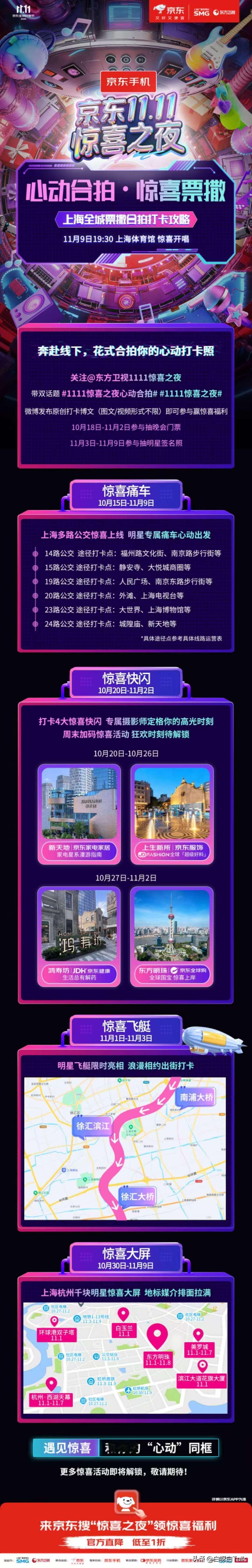 尖叫预警!京东11.11惊喜之夜官宣,顶流明星集结、门票免费送,这波福利太炸了! 兄弟姐妹们,我宣布,这可能是年度最值得期待的晚会!10月20日,京东宣布11.11惊喜之夜将在上海体育馆震撼开启,光是看到已公开的明星阵容我就已经疯狂心动——刘雨昕、米卡、吴宣仪、刘宇宁、希林娜依・高、TOP登陆少年组合等超强阵容齐聚,这简直是追星人的终极盛宴啊! ✨神仙阵容惊艳曝光✨ 从全能偶像到实力唱将,这场晚会直接把舞台品质拉满!TOP登陆少年组合的朱志鑫、张泽禹等五位弟弟将用青春舞台燃炸现场,希林娜依・高的天籁之音、刘雨昕的炸场舞技、米卡的迷人声线、吴宣仪的甜心暴击,还有锤娜丽莎的爆笑跨界...更惊喜的是,官方透露后续还有重磅艺人持续解锁,这阵容说是"娱乐圈年会"都不为过! 🎫上万门票免费送🎫 更让人激动的是,所有门票只送不卖!从10月20日起,上京东搜索"惊喜之夜"就能参与福利活动:京东PLUS会员可抽奖1分钱购票,点外卖累计订单前50名直接送门票,预订指定酒店房型也能获赠门票!这波操作真的太宠粉了,完全不给黄牛留机会! 🌟线上线下全民狂欢🌟 除了晚会本身,京东还在上海打造了系列惊喜活动:"明星专属痛车"穿行外滩、城隍庙等热门地标,新天地等地的"惊喜快闪"可能会有明星空降,11月1日更有"明星飞艇"浪漫巡游!就连杭州的小伙伴也能通过千块大屏跨城联动感受这场盛宴。 不得不说,京东这次真的下血本了!既有顶流明星撑场,又创新了全民互动玩法,11月9日锁定京东直播和东方卫视,这场惊喜之夜注定要刷爆朋友圈!现在立刻打开京东,说不定下一个拿到免费门票的幸运儿就是你!