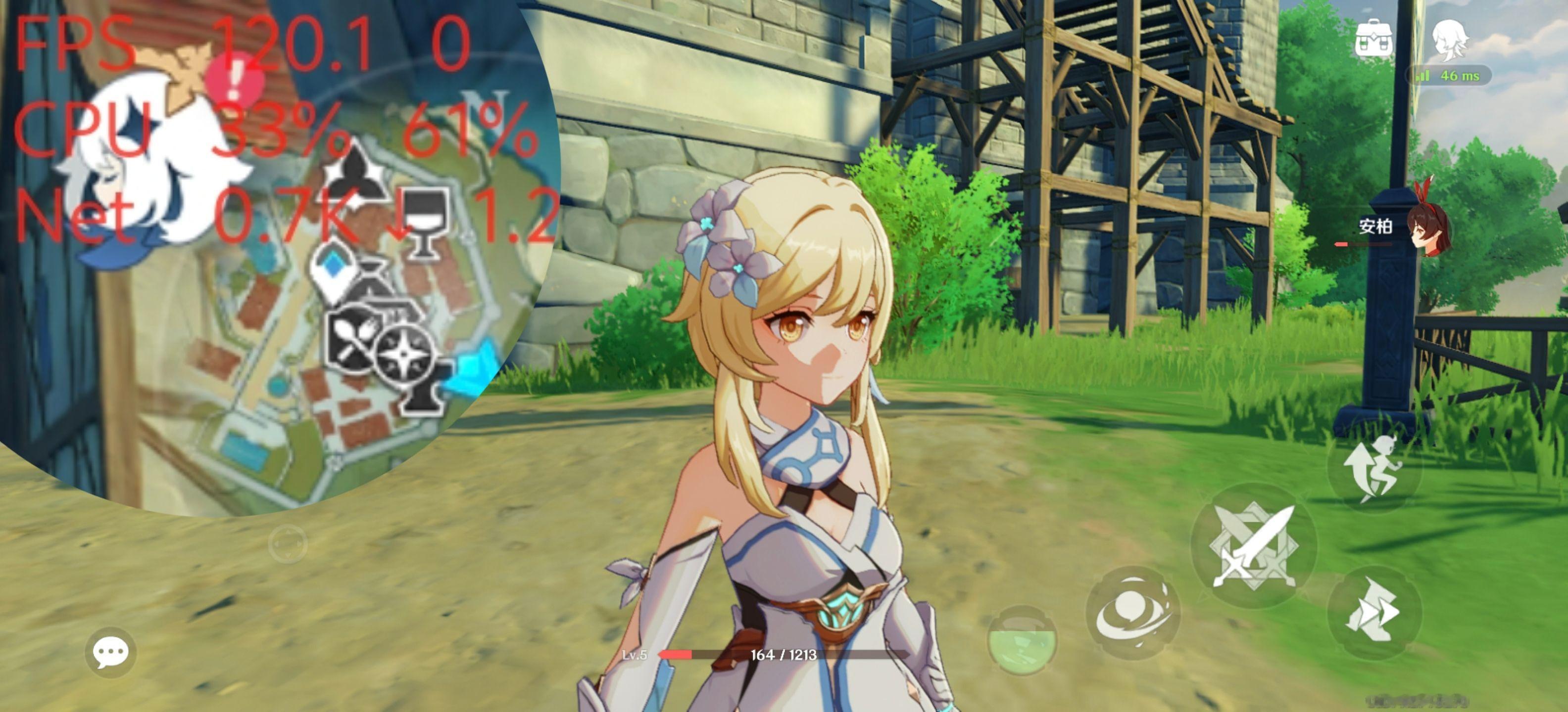紧接着是和平精英10分钟测试,依旧是画质全开,极高帧率下逼近144左右,相当夸张;最后是对硬件要求较高的原神,同样画质锁定在极致档位下,10分钟跑图基本稳在120帧左右,那怕是战斗场景也没有掉帧等情况,保持画面清晰的同时,帧数表现相当出色。