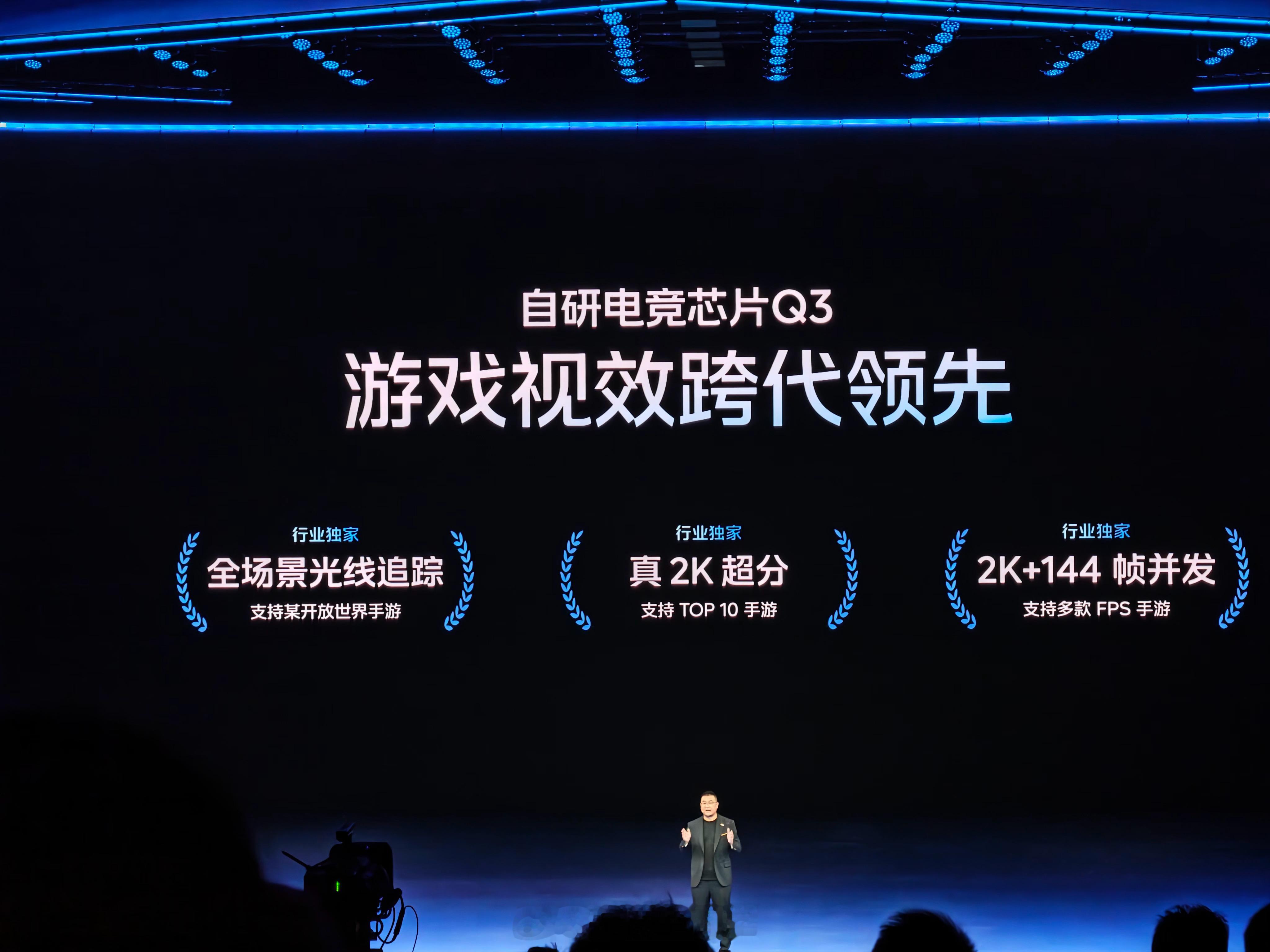 搭载第五代骁龙8至尊+LPDDR5X Ultra和UFS 4.1,跑分达到438万,还有自研电竞芯片Q3,相当于手机里的独显芯片,游戏细节、色彩更为细腻