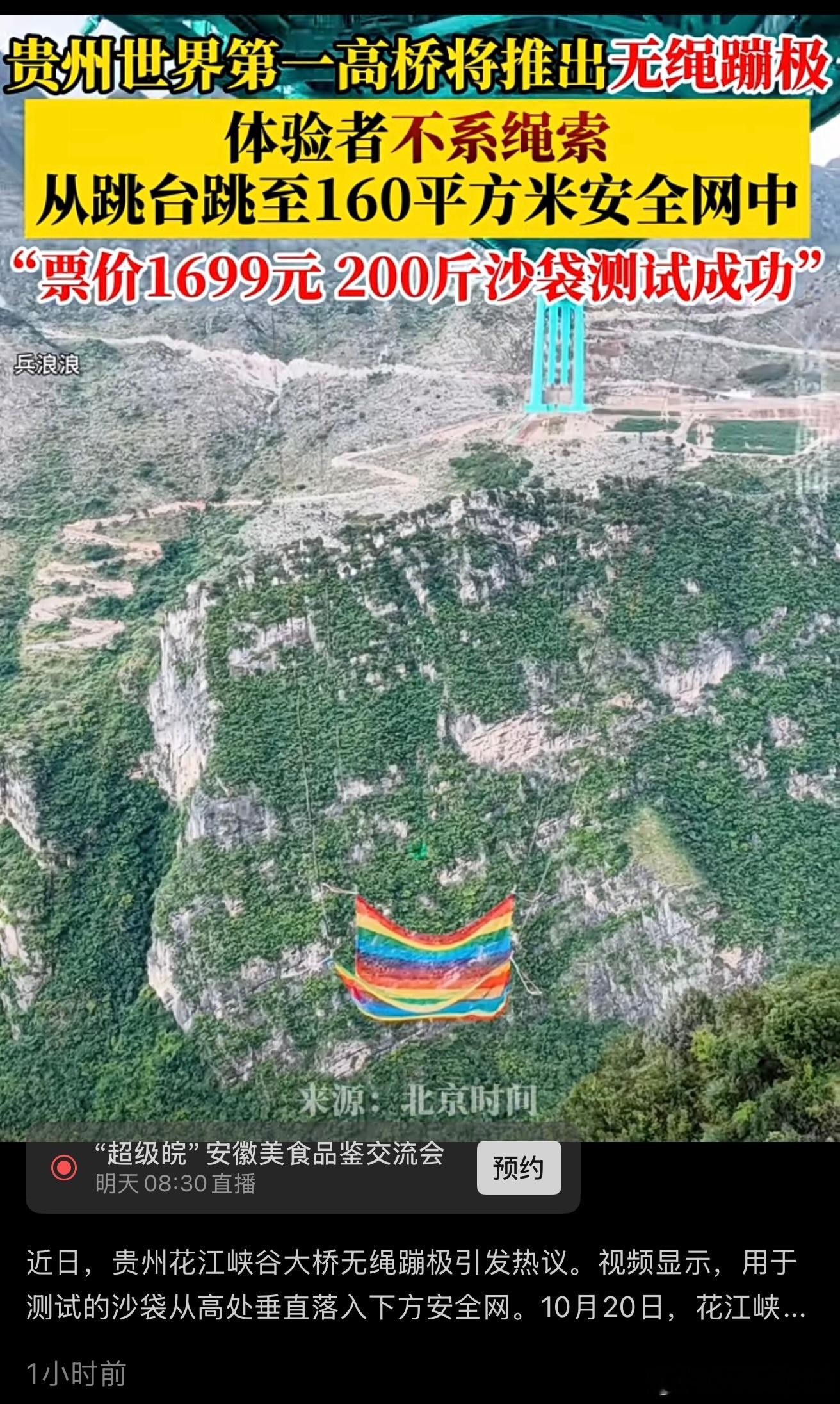 贵州世界第一高桥上面蹦极,还是无绳蹦极!!!