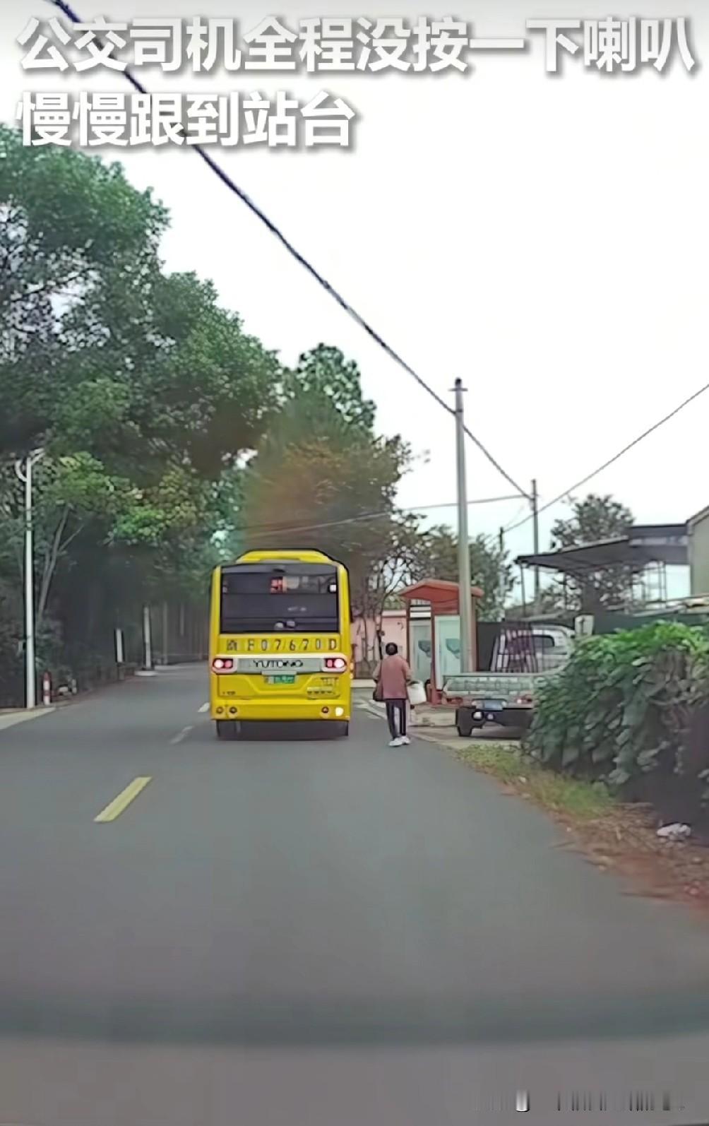 浙江又被人民日报表扬了, 这次是一位公交车司机, 在浙江嘉兴的农村,有一位司机记录了让人温馨的一幕。 老奶奶要坐公车,因为公车站台离她家有一段距离,老奶奶年龄大的走的比较慢,只能慢慢的走。 这时候她需要乘坐的公交车,也快到站台了,司机知道老奶奶需要乘坐这趟公交车,司机没有开的很快,就这样慢悠悠的等着老奶奶,司机都没有先到站,而是刻意保持着和老奶奶一样的速度,他不想给老奶奶压力。 就刻意保持着和老奶奶一样的速度,等司机开到站台,老奶奶也走到了站台,司机全程没按一下喇叭。 等老奶奶上车后,公交车司机也没有立马开走,而是等老奶奶刷完卡,安稳的坐在座位上,才慢慢加速离开。 公交车司机,每一个动作都温暖了老奶奶,也温暖了身边的人,细节之处可见公交车司机的人品! 司机的动作应该是下意识的,常年开这条路,应该经常遇到这些老人,知道他们的生活习惯,那是刻在骨子里的善良,司机师傅本身就是一位很好的人,不是因为他是一位公交车司机才变好的! 在农村的人都知道,农村的公交车没有城市的多,错过这一班公车,下一班公车可能需要等半个小时甚至一个小时。 公交车就是服务百姓的,善待老人,就是善待老了以后的自己,也许她从老奶奶身上看到父母的身影。 慢下来的是车速,暖起来的是人心!