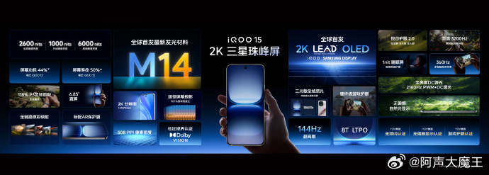 -屏幕:6.85 英寸 三星 M14 144Hz OLED直屏
