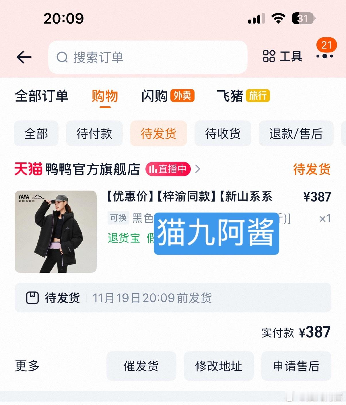 这个牌子感觉挺好的,因为之前也买过穿过知道,就价格很亲民质量也可以!今天正好大降温,顺便买了!梓渝 鸭鸭