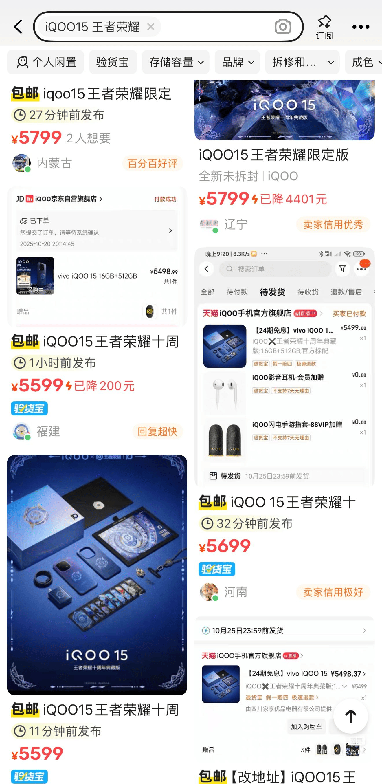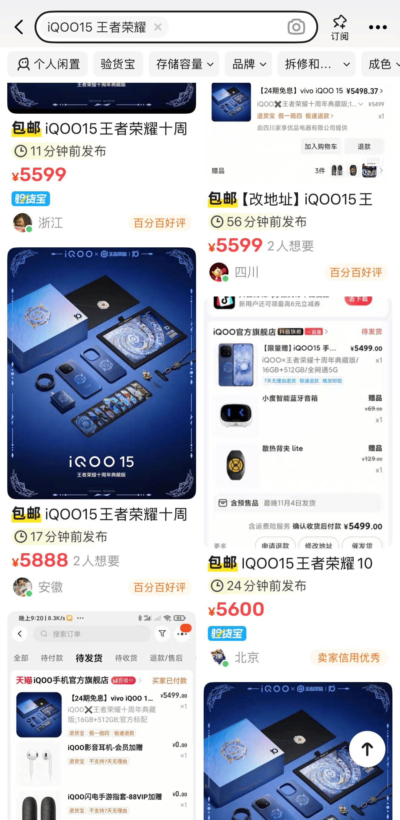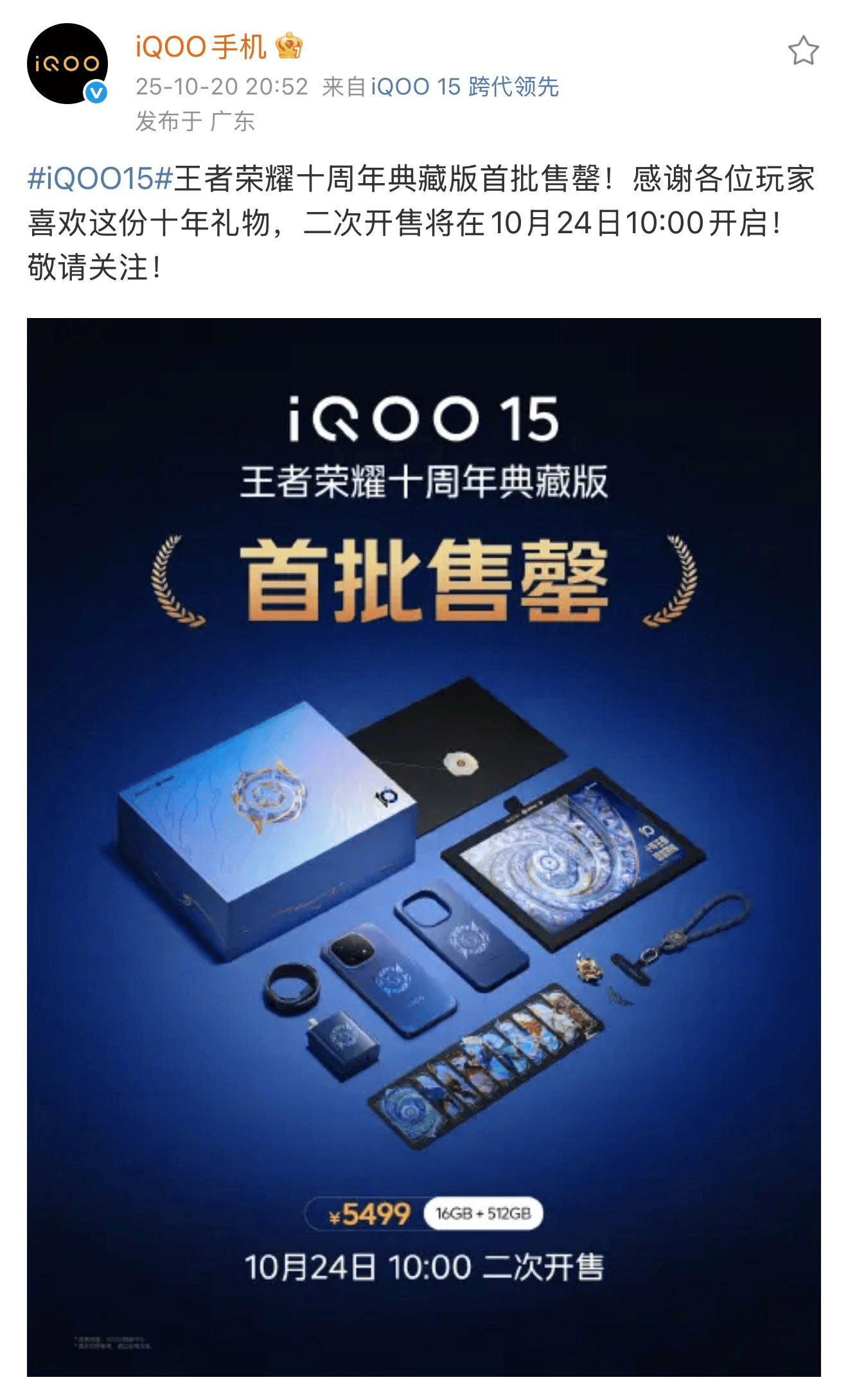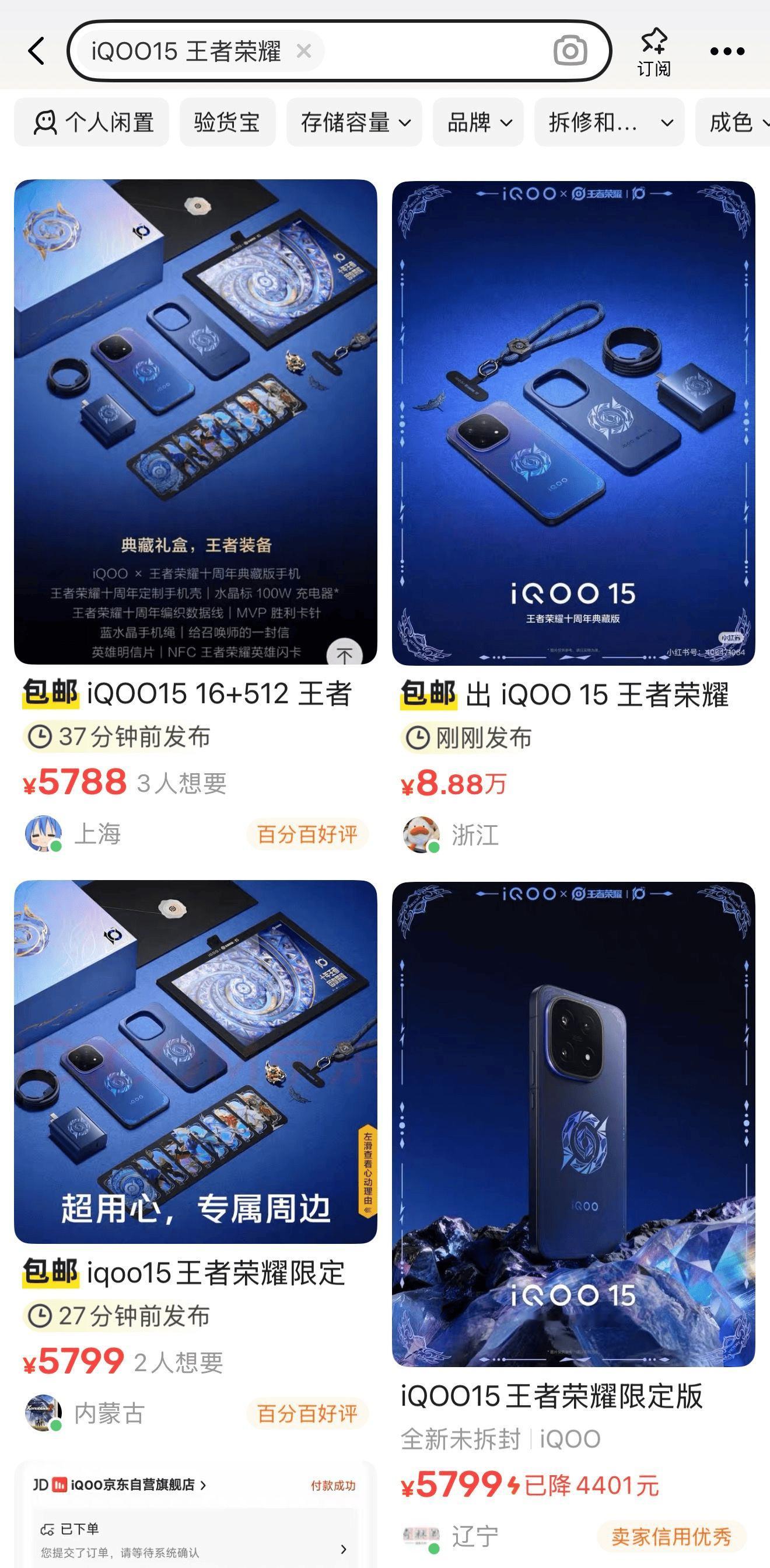 刚才发布会的时候,我就觉得iQOO × 王者荣耀十周年典藏版这个绝对要火爆。果不其然,官方开售瞬间售罄…手慢党真的哭晕…看了下闲鱼,现在已经出现溢价出售和求购的了……
