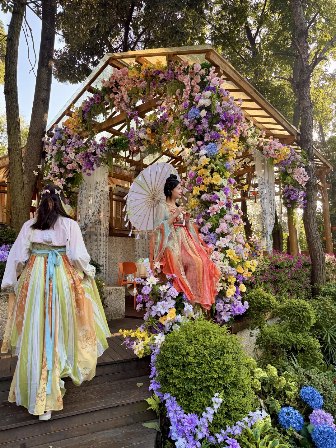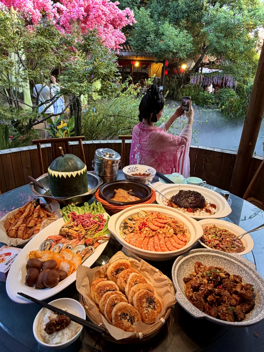 有很多穿着汉服的小姐姐打卡拍照📷,还有民谣驻唱,歌舞表演~跟来到电视剧里一样!!太美了!!