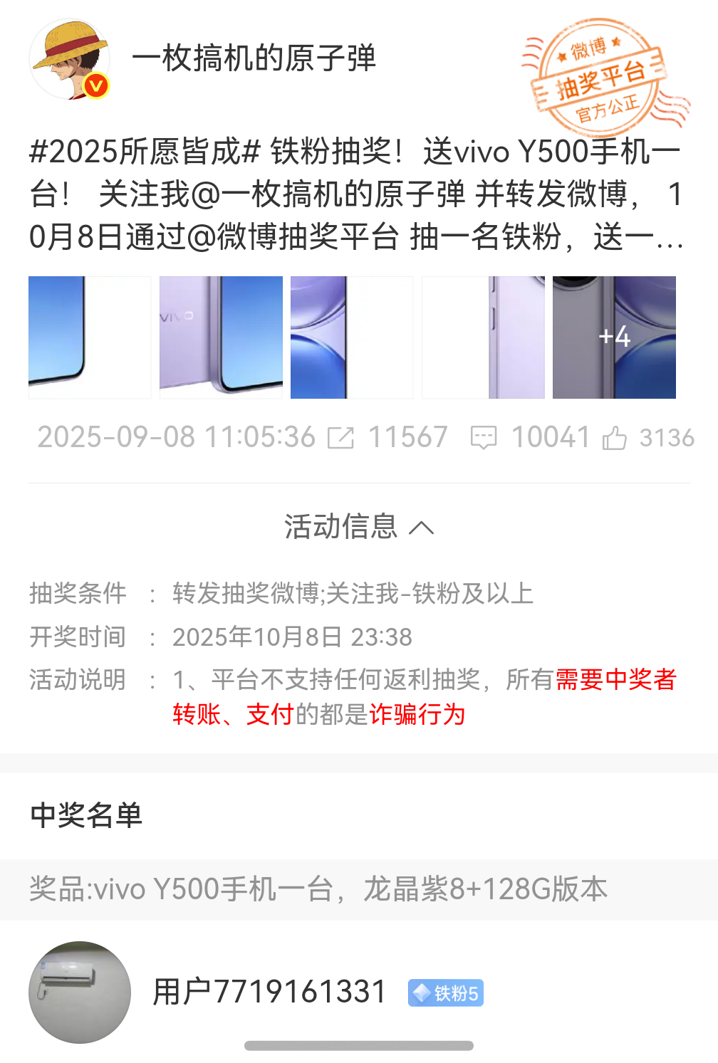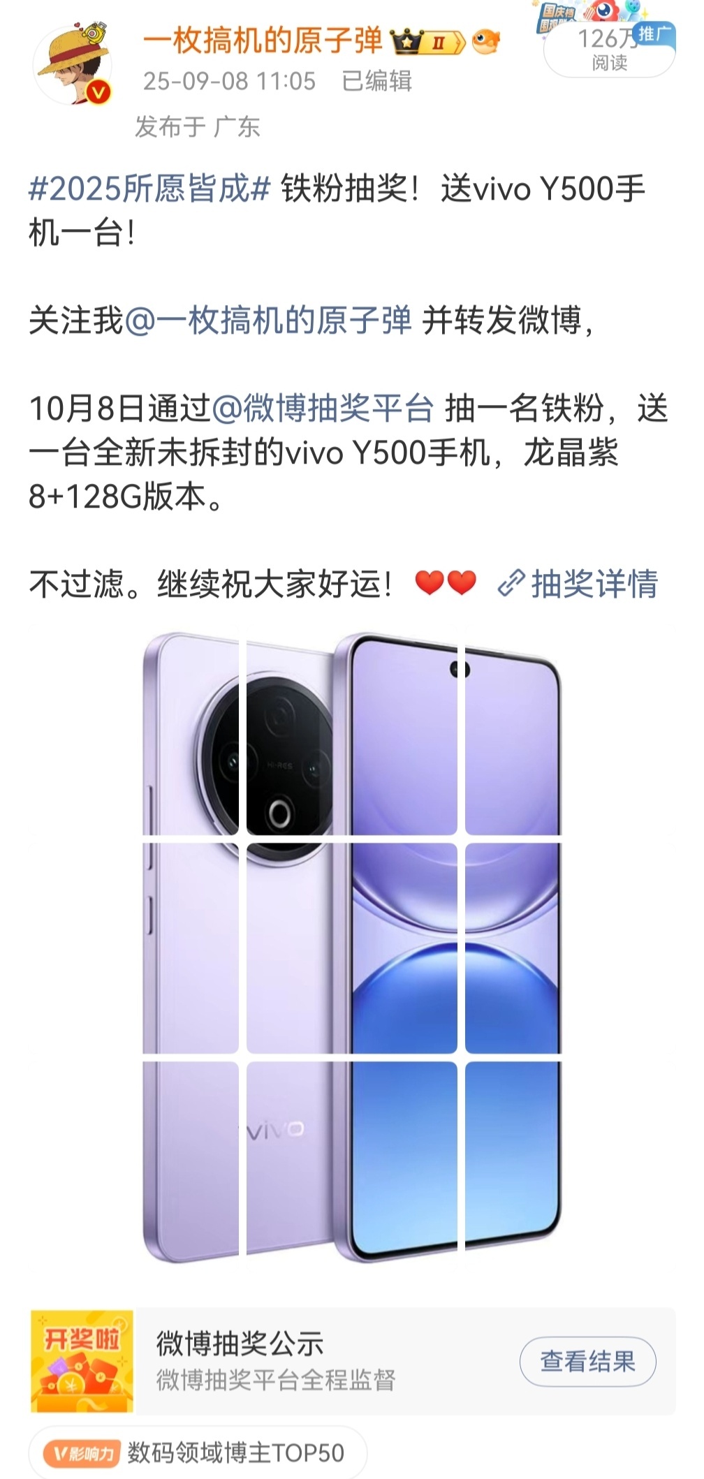 最近子弹兄一直在忙一件事,那就是给抽中了vivo Y500手机的粉丝买手机。谁知8+128G版本一直缺货,无奈跟中奖粉丝沟通得到同意的情况下,在vivo京东自营旗舰店,给他/她升级买了8+256G版本!这你敢想吗?[酷][酷][嘻嘻][嘻嘻][色][色]
