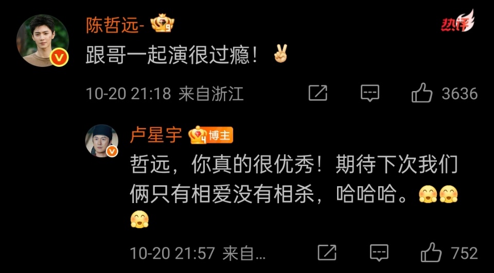 同剧组演员说陈哲远很优秀陈哲远被贴脸开夸陈哲远真的特别敬业超级优秀啊!!陈哲远