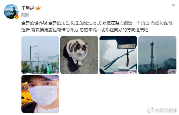 王星越最近在努力创造一个角色王星越谈新角色:富有挑战性、一切往好的进展[努力]加油,演员与角色相互成就,期待王星越,新剧《暴虎冯河》拍摄一切顺利[么么哒] ​​​