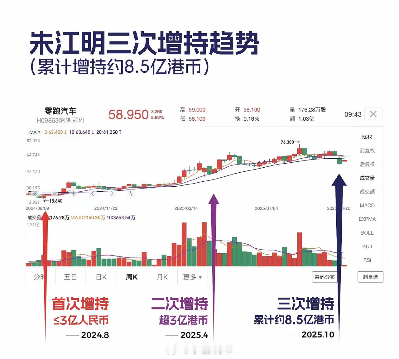 零跑汽车今早发公告,创始人朱江明他们近期又增持了324.35万股,这次花了约2.05亿港元。从2024年8月算,这是两年里第三次增持了,累计下来差不多有8.5亿港元。