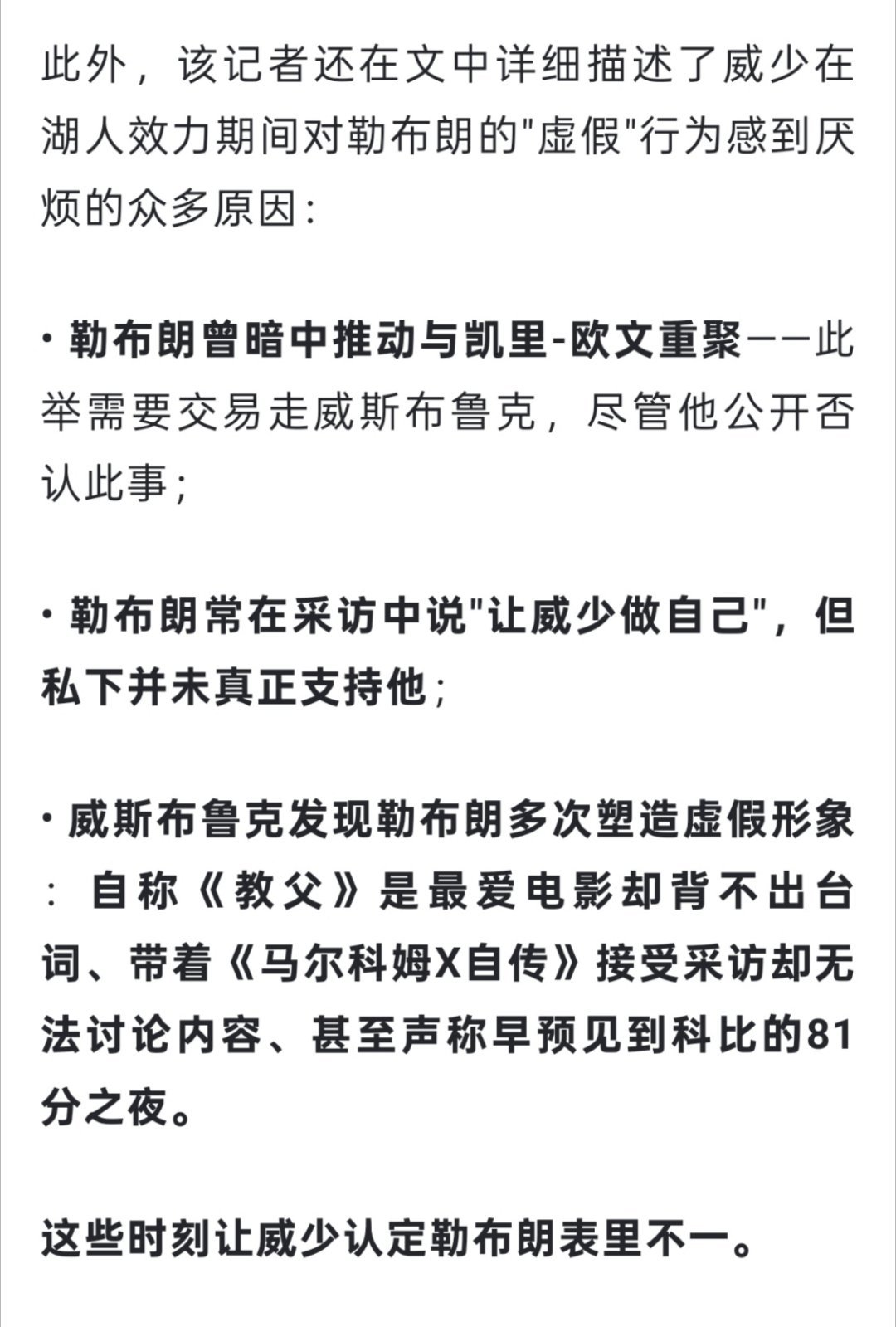 威少真的不喜欢老詹!NBA记者爆料,威少在湖人的时候,非常不满詹姆斯有两副面孔,