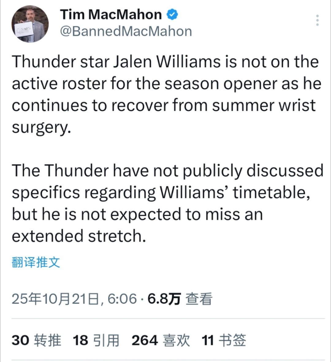 ☞老8揭幕战不打,但回归日期不会太远