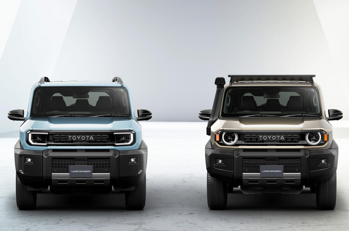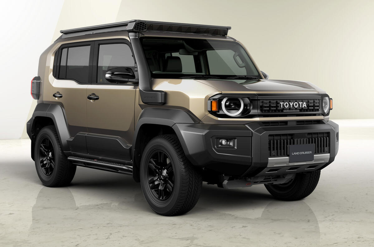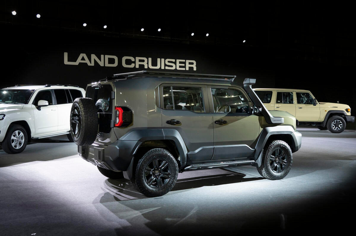 说是要对标路虎卫士90。 长4575mm,宽1855mm,高1960mm,轴距比同平台的LC 250短270mm,接近角31°,离地间隙约215mm,转弯半径5.5m,搭载2.7升四缸汽油发动机,最大功率161bhp,配备6速自动变速箱和四轮驱动系统。
