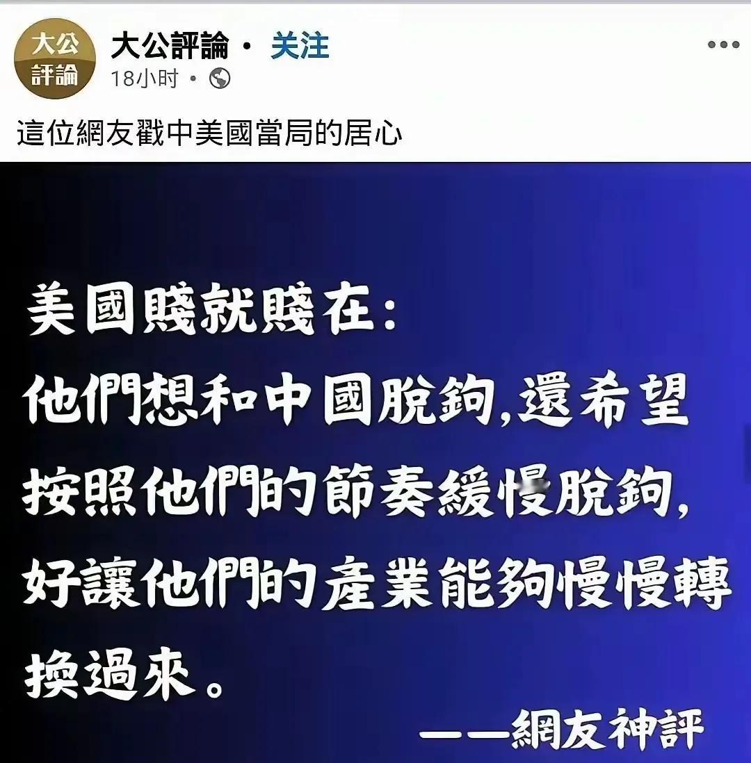 特朗普一直极力宣扬的让制造业回流,当然有为将来与东大脱钩作准备的意图。 博弈是
