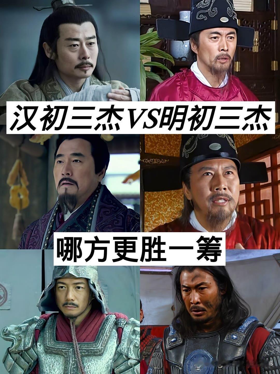 汉初三杰VS明初三杰:哪组更能打?汉初三杰韩信、张良、萧何靠“单点强”,明初三杰徐达、刘伯温、李善长赢在“团队均衡”,各有特点! 汉军核心是韩信,有人说他是中华历史军事第一,能进统帅前5,“说第二没人敢说第一”,张良计谋也被夸“大汉更牛笔”。 明军徐达是顶尖水平但稍逊韩信,刘伯温被指“神话了”,和张良比“不自量力”,李善长还拖后腿。不过明军有大炮火枪,按时代规律,同条件下能“吊打”汉。 有人选汉军,因韩信太突出;有人站明军,靠整体军团强。你更倾向哪组?