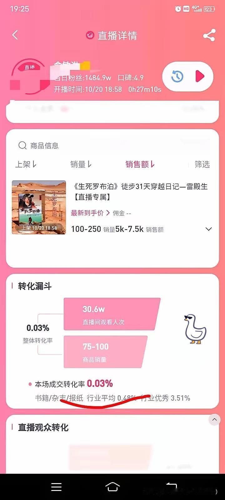 家人们,惊不惊喜意不意外?“鱼刀”先生又双叒开启直播访谈啦!之前还在地球号和某书频繁开播,我都以为他彻底转移阵地了,结果这又杀回抖音。咱就是说,这一番折腾,最后还是觉得抖音香呗? 我刷到这场访谈,好奇点进去瞅了一眼。好家伙,看不到在线人数,只能瞧见有多少人看过。我对老年人的唠唠叨叨实在提不起兴趣,直接秒进秒出。虽说没细看内容,但听说销量很不理想。同样的书,不同人卖效果大不同。这近一年多,他哪次访谈能让嘉宾的书畅销?不过老头不缺钱,书卖不动就砸钱,利益给够,嘉宾自然乐意配合。“鱼籽酱”们还说他这是单纯为知识文化输出,不在乎业绩,话是这么说,可没几个人看,知识分享给谁呢? 从数据来看,场观人次30.6万,这里面像我这样秒进秒出的也“贡献”了一把。转化率0.3,销售业绩没过万。在透明的网络世界,数据藏不住。我就纳闷了,这样的直播访谈意义究竟在哪?明知结果不好,还乐此不疲。我觉得他是在强化个人IP,现在孤军奋战,不努力不行啊。公司走产品路线,可个人IP的重要性他比谁都清楚。没办法,老骥伏枥,还得继续拼搏,毕竟得为曾经的决策负责。大家怎么看呢,快来评论区聊聊!直播开鱼 捞鱼直播间 刀客直播间 刀专家 切鱼高手