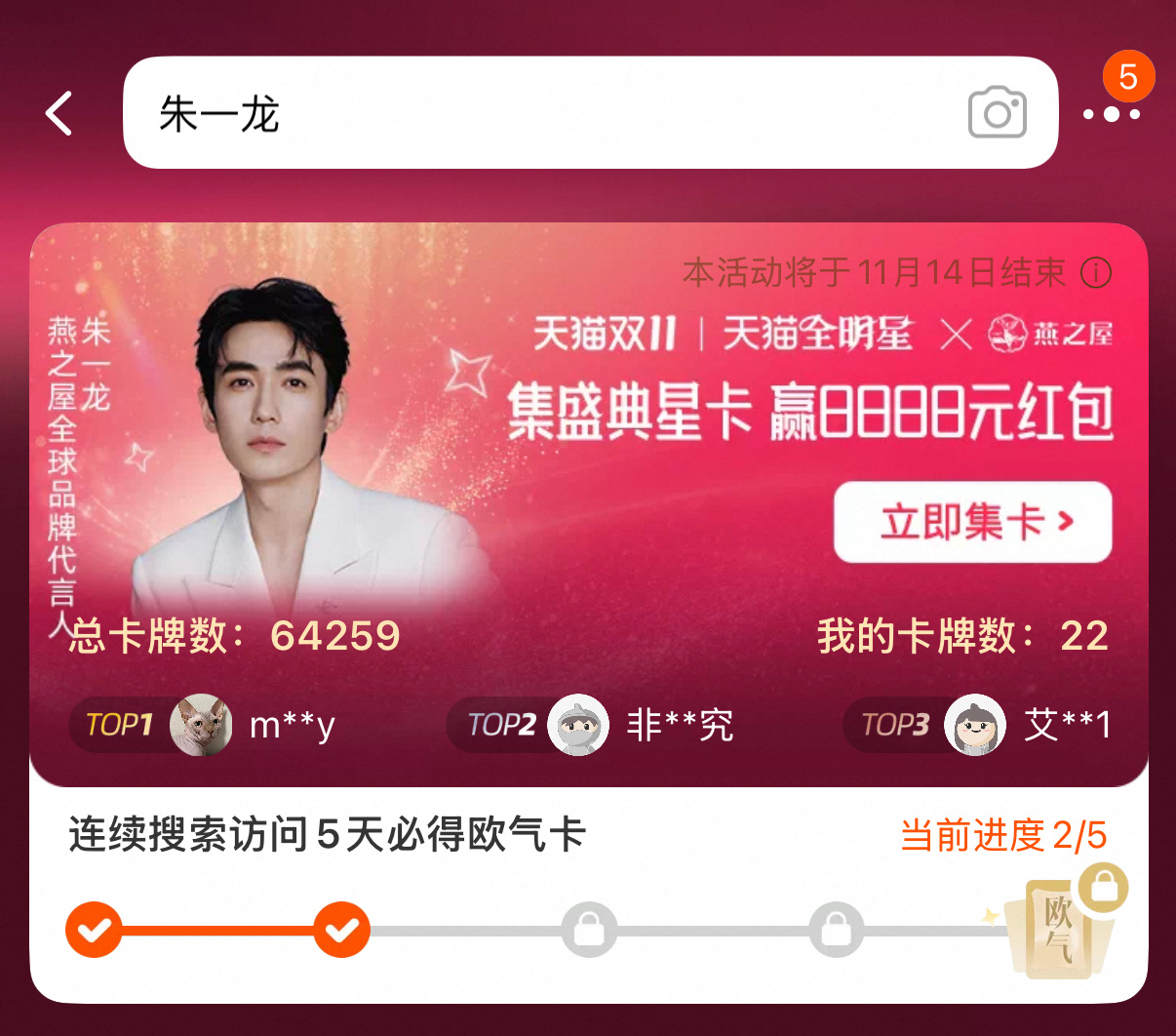 2️⃣淘搜🔍朱一龙 集齐星卡 记得做任务😊