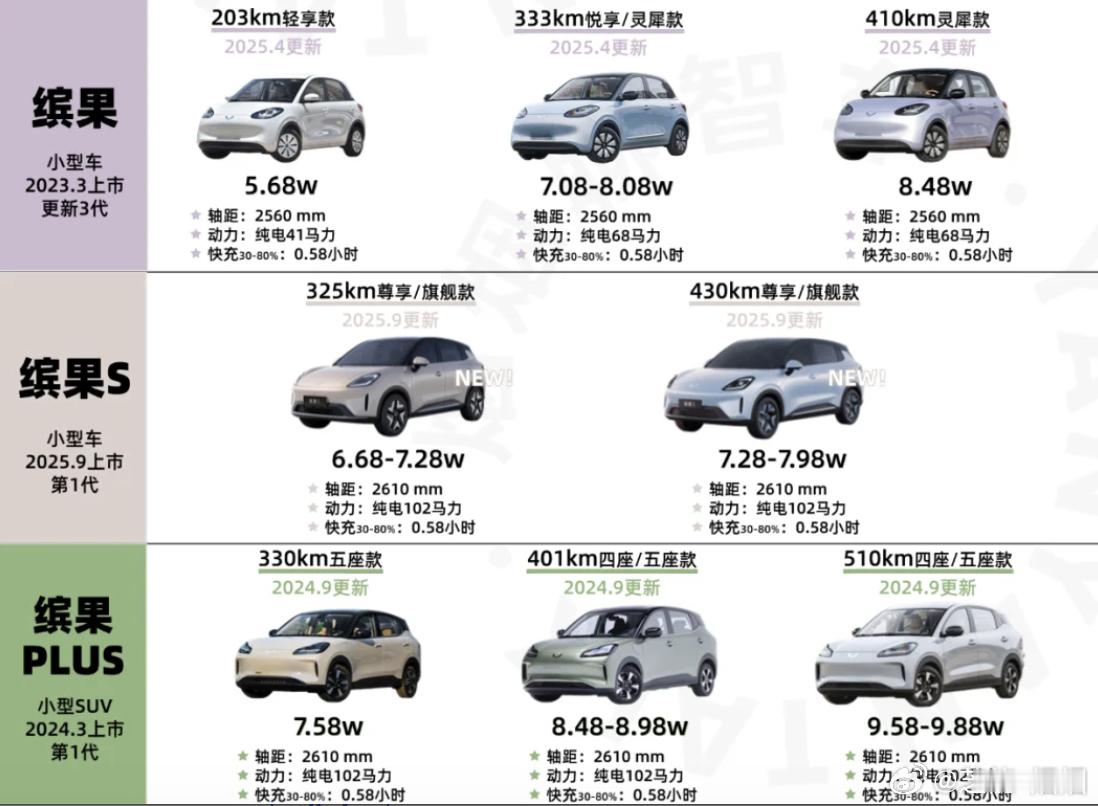 五菱打法清晰,深耕 10 万元以下代步市场,靠宏光 MINI 打底,丰富缤果家族造辨识度,弱化性能智能,在车内细节与安全上发力,精准抓用户需求。