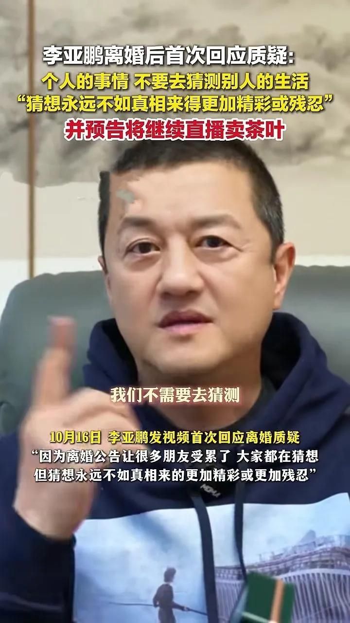 李亚鹏回应是否复出拍戏:现在拍戏,谁看呢? 离婚风波后,李亚鹏首次回应网友对他重返荧幕的期待,却坦言:“现在不是你想上岗就能上岗的,当年想下岗就下岗,如今拍戏,谁看呢?”语气中带着自嘲与无奈。 他坦言目前忙于事业,暂无拍戏计划,并淡然面对离婚后的生活,称“猜想不如真相”,表示将专注直播工作。曾凭《笑傲江湖》等剧红极一时的他,如今选择告别演员身份,令人唏嘘。 李亚鹏离婚后回应是否再拍戏 李亚鹏离 李亚鹏不当演员可惜吗