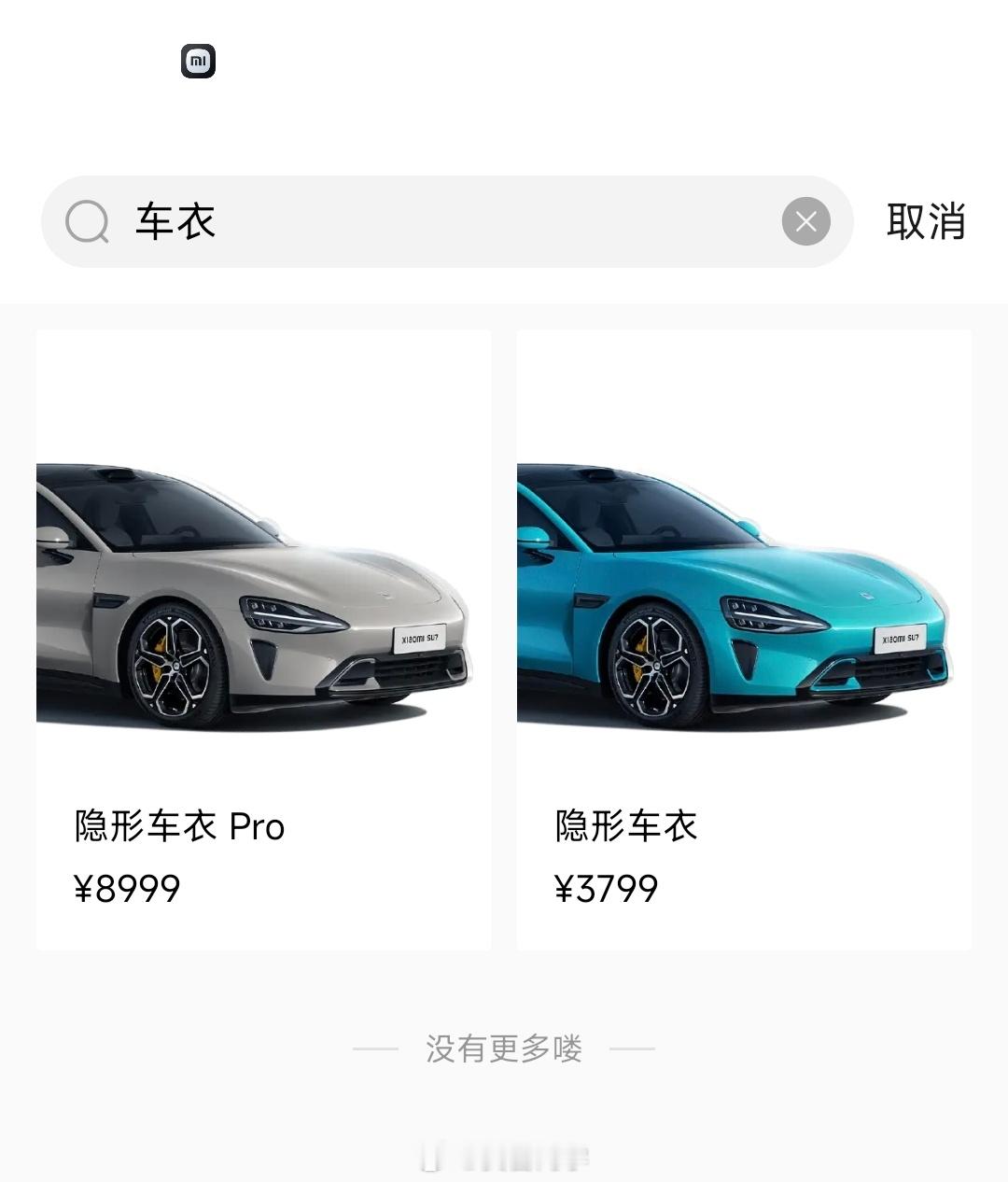 小米汽车这边也出车衣了,2 个版本,3799 和 8999