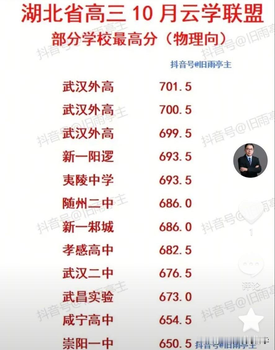 湖北省高三10月云学联盟最高分出炉,外高包揽最高分前三甲,最高分701.5分,