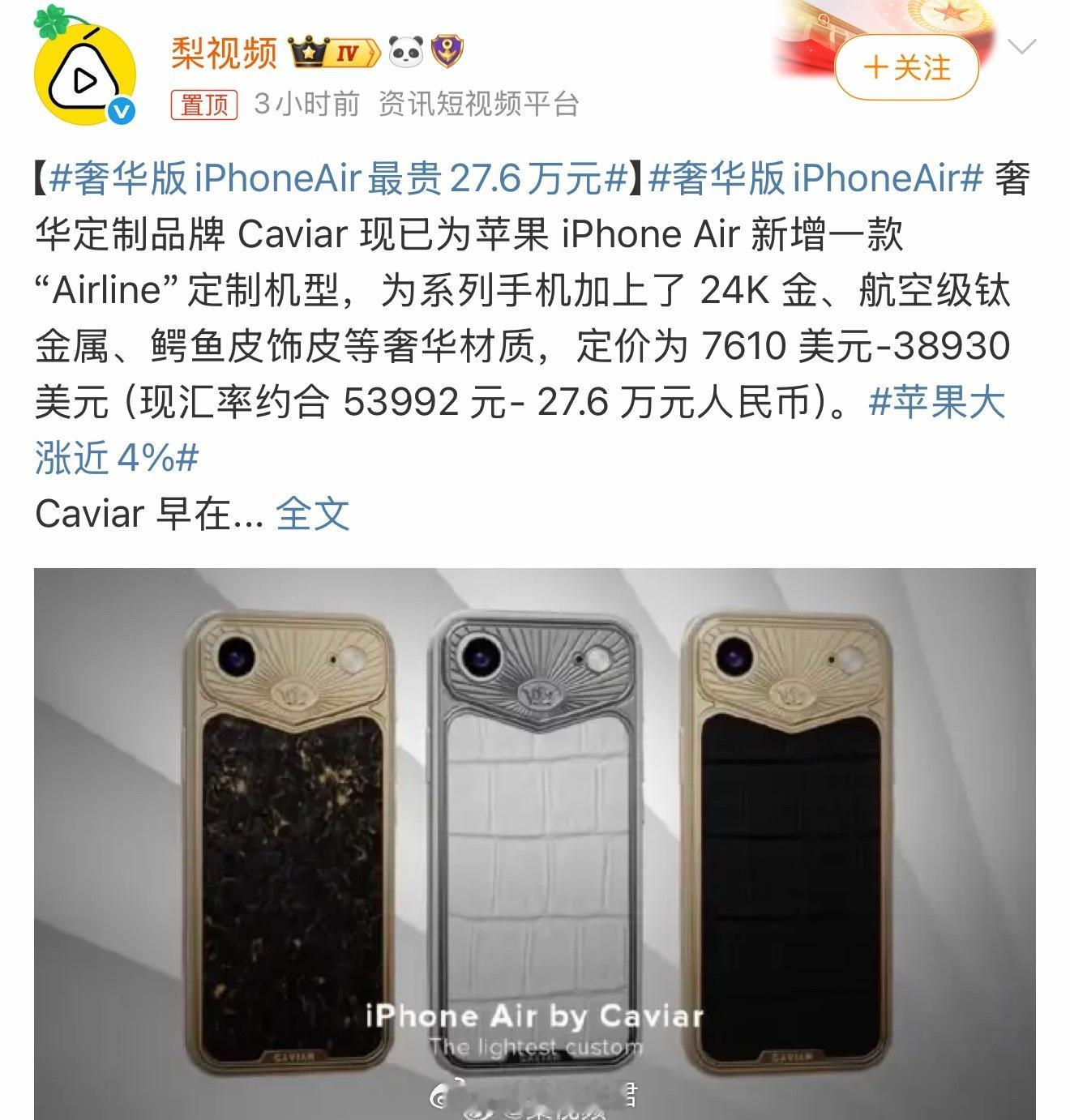 奢华版iPhoneAir最贵27.6万元建议购买收藏,不要拆封,十年后价格肯定翻番,想想最早的iPhone一代~