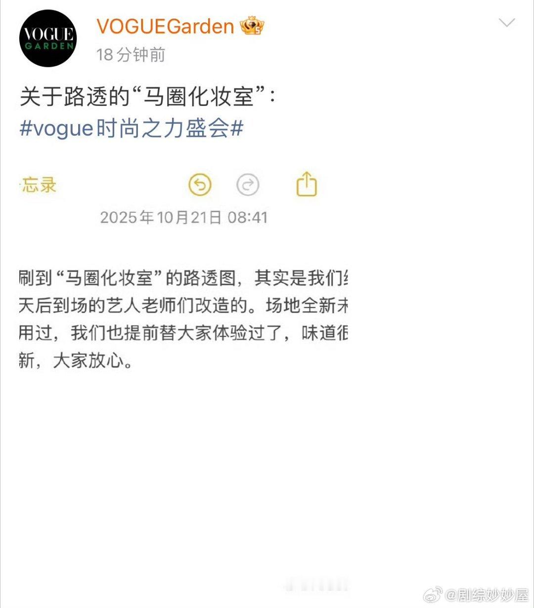 今年VOGUE盛典,艺人的化妆间在马圈里