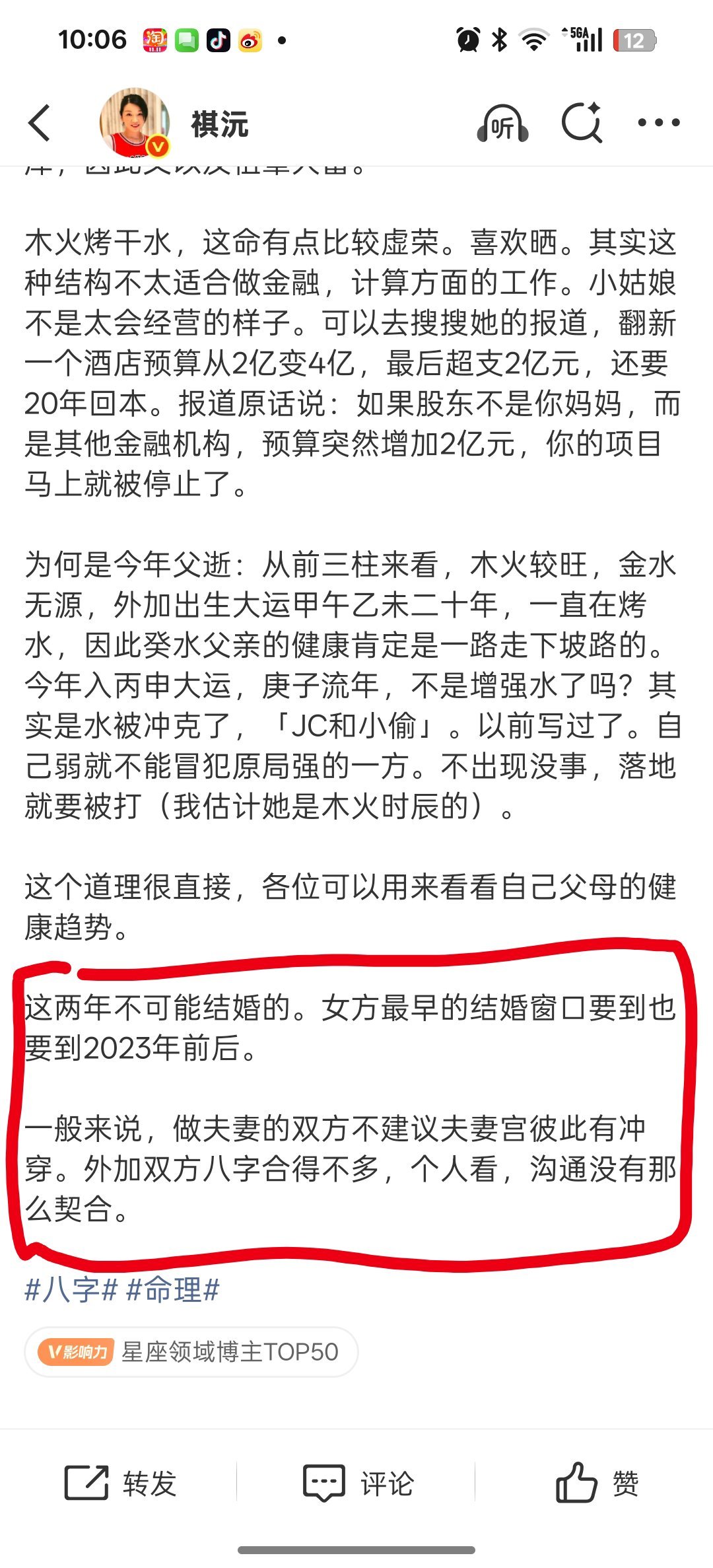 之前我2020年就说过,富家女儿是23年结婚,那时候我也说了,富家女婿和富家女儿,他们两个人沟通没那么契合,没想到才两年,那么快传出闹不和了。