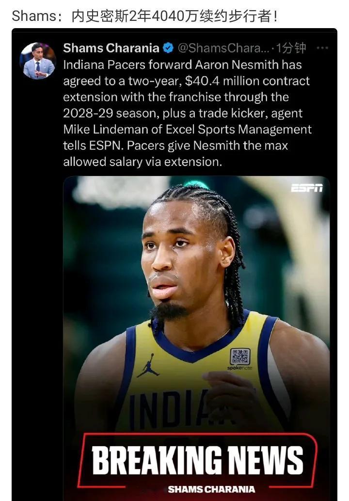 被低估的3D 内史密斯2年4040万续约步行者 真白菜价呀,这也太划算了吧 忘记