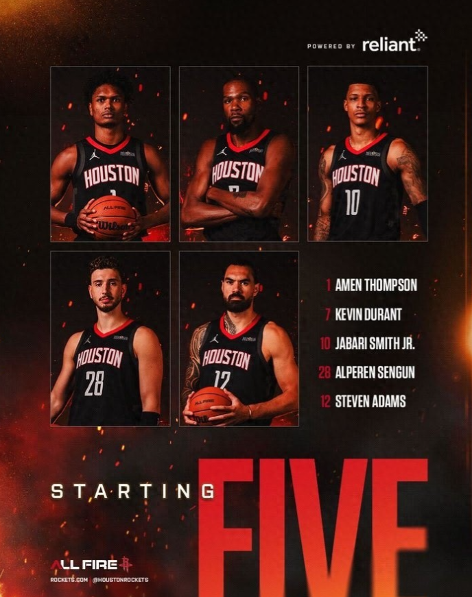 明日07:30,NBA常规赛揭幕战,火箭客场对阵雷霆。 火箭主教练乌度卡今日接受采访时透露了火箭揭幕战的首发阵容,他表示球队将沿用季前赛时使用过的双塔阵容,首发五人具体为: 阿门、杜兰特、小史密斯、申京、亚当斯。 值得一提的是,这是一套“五大”阵容,五人身高分别为:阿门2米01、杜兰特2米11、小史密斯2米11、申京2米11、亚当斯2米11,首发平均身高为2米09。