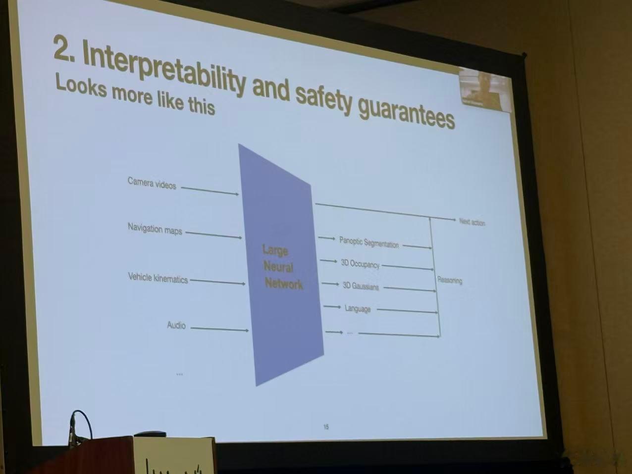 简单来说,这张图描绘了一个试图在“强大性能”和“可解释性、安全性”之间找平衡的智能驾驶系统架构:用大型神经网络整合多模态输入,输出多层次的感知与决策结果,以此让系统的行为更可理解、更安全。[点赞]