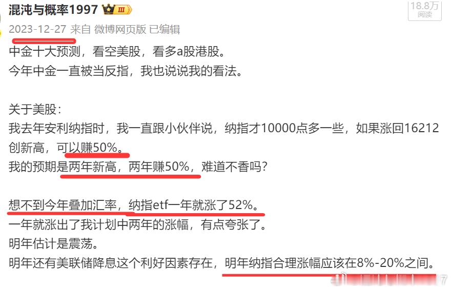 23年我还预测24年纳指应该继续涨8%-20%,当时也是被群嘲,结果24年纳指涨了24%。