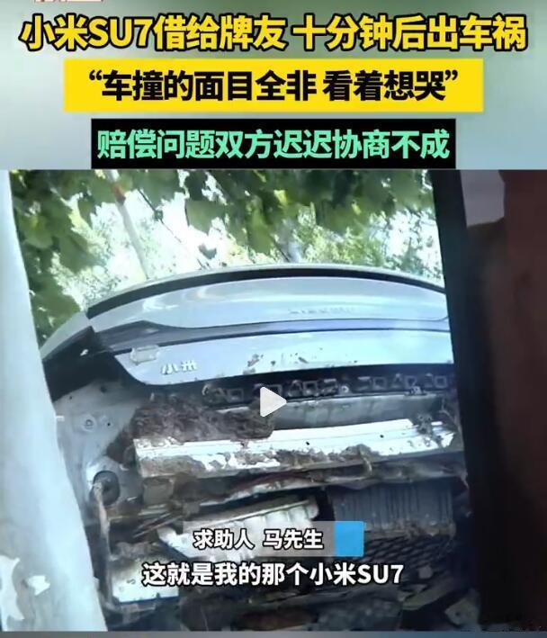 小米SU7借朋友开10分钟被撞烂小米SU7借朋友被撞烂双方反目