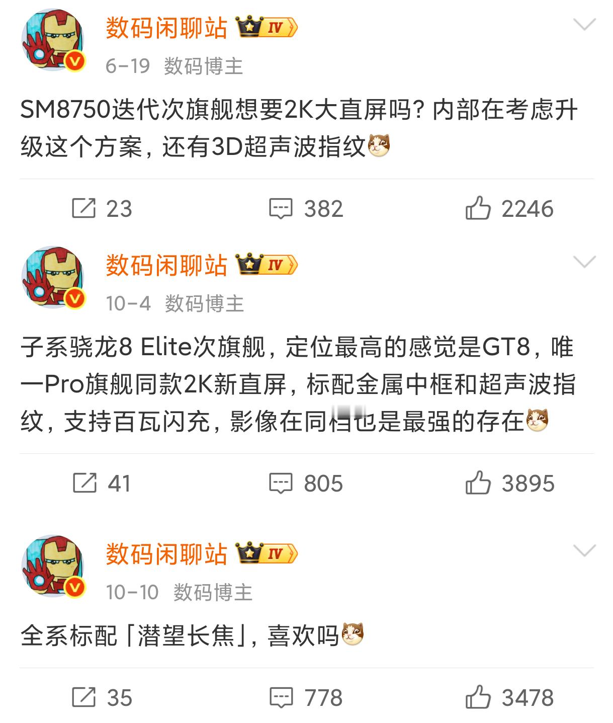 6.79"2K+144Hz BOE Q10+,大R角视觉四等边直屏,全亮度DC调光;后置50Mp 1/1.56"主摄,50Mp 3.5X潜望镜,理光GR联名;骁龙8E+独显芯片R1,7000mAh+100W;3D超声波指纹,IP66/IP68/IP69,章若楠代言。