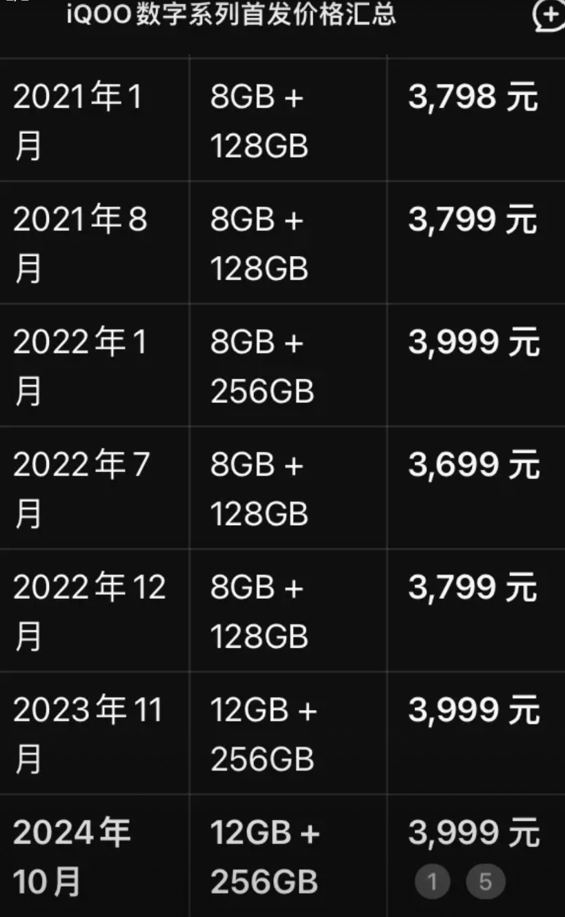 现在的国产手机是越来越贵了。 看看VIVO的子品牌IQOO系列首发价就知道了。 IQOO7: 3798元(2021年1月) IQOO8: 3799元(2021年8月) IQOO9: 3999元(2022年1月) IQOO10: 3699元(2022年7月) IQOO11: 3799元(2022年12月) IQOO12: 3999元(2023年11月) IQOO13: 3999元(2024年10月) IQOO15: 4199元(2025年10月) 在2022年一年时间发布了3款手机,实属罕见。 从2023年开始固定每年一款子品牌数字旗舰。 起步价格从当年3699元到现在4199元,当主持人大声问这个价格满意吗?台下尴尬的附和声和稀稀拉拉的掌声就说明了一切。这价格都接近母品牌X系列了,这是要母子齐头并进啊。 而苹果手机都在降价,国产手机却在涨价,是底气?是贪欲?还是成本提高了?