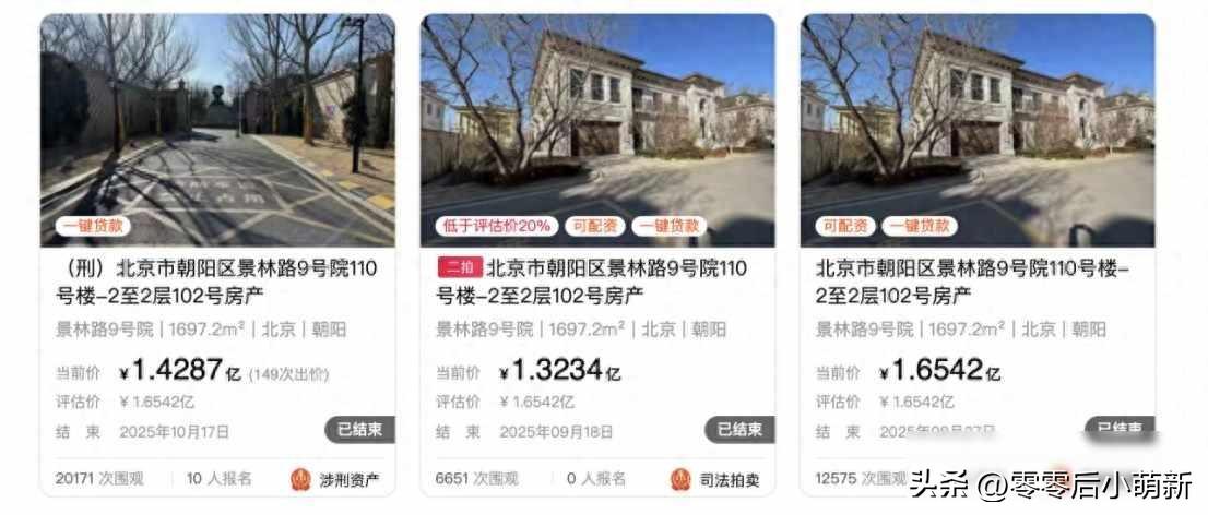 北京顶豪法拍疯抢,富人悄悄接盘,他们到底在怕什么? 10月17号,北京两处顶级豪宅拍出高价,远洋LA VIE一栋1700平米的独栋别墅,空置着没人住,最终卖到一亿四千三百万,霄云路8号的三套房,单套最高叫到五千六百八十三万,这两处房子之前都流拍过两次,价格一降再降,可这次却引来上百轮竞价,有人几秒钟就加一次价,跟打游戏似的抢着出价。 这些房子普通人碰不了,报名的都是能拿得出几百万保证金的人,没一个散户,他们不为便宜,图的是地方好、看得到湖、房子稀疏、产权清白,房子空了好几年,物业费高得离谱,可对他们来说这反而是好事,没押过贷款,没扯过皮,地儿就这一个,握在手里比存银行还踏实。 很多人觉得法拍房是穷人捡便宜的机会,其实不是,现在买法拍豪宅的,大多是想把钱藏起来的人,他们不担心房价跌,更怕钱不值钱,怕汇率乱动,怕政策说变就变,买一套实实在在的房子,比存在银行或者炒股来得安心,尤其是这种豪宅,不公开卖,不用排队摇号,还能拖着不缴税,等于在家里留了个能藏东西的地方。 这些房子突然火起来,跟网上的传言脱不了干系,比如霄云路8号,去年有人说马斯克要买那里的空中四合院,其实根本没这回事,可话一传开,大家就认了这地方有分量,买的人不是买房子,是买一张进圈的票,你住进去了,别人自然知道你是什么层次,2021年这套房才七十九次出价,今年直接涨到二百七十六次,有钱人越来越急,生怕错过一个位置。 数据也说明了这趋势,今年前三个季度北京法拍房成交率不到一半,但平均单价却涨到了四万二,不是因为房子好卖,而是出手的人多半冲着避险去的,他们不看市场冷热,只想着钱能不能留得住,一线城市里,高净值人群开始把法拍当成了逆向操作,绕开限购,躲开新政,悄悄把资产往更隐蔽的地方挪。 和2020年不一样,那时候是人急着卖房还债,现在是人急着买房囤货,西方早就有用信托加法拍避税的路子,国内高端圈子里也慢慢跟上了,北京没明说放开法拍限购,但实际操作里,非首套房也能过户,意思已经很明白了。 当一套豪宅法拍不再没人要,反而被抢到高出四成,这说明啥,不是楼市回暖了,是那些有钱人不信市场了,他们觉得,只有实打实的砖头瓦块,才真能传给下一代,才藏得住,才扛得住风浪,别人还在等房价跌,他们已经悄悄下手了。