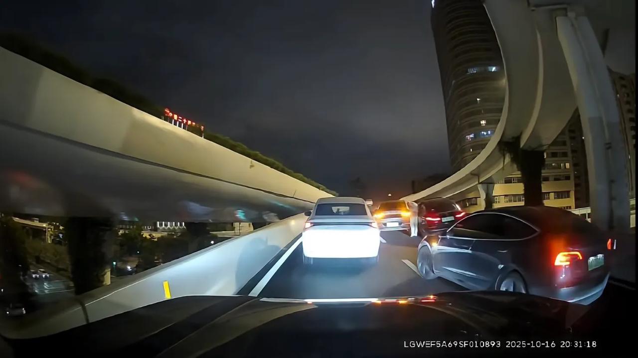 网友爆料,上海高架大柏树转中环,2部新能源发生交通事故,黑色小轿车有惊无险,在护栏边缘徘徊,安全第一呀![尬笑] 城市观察员