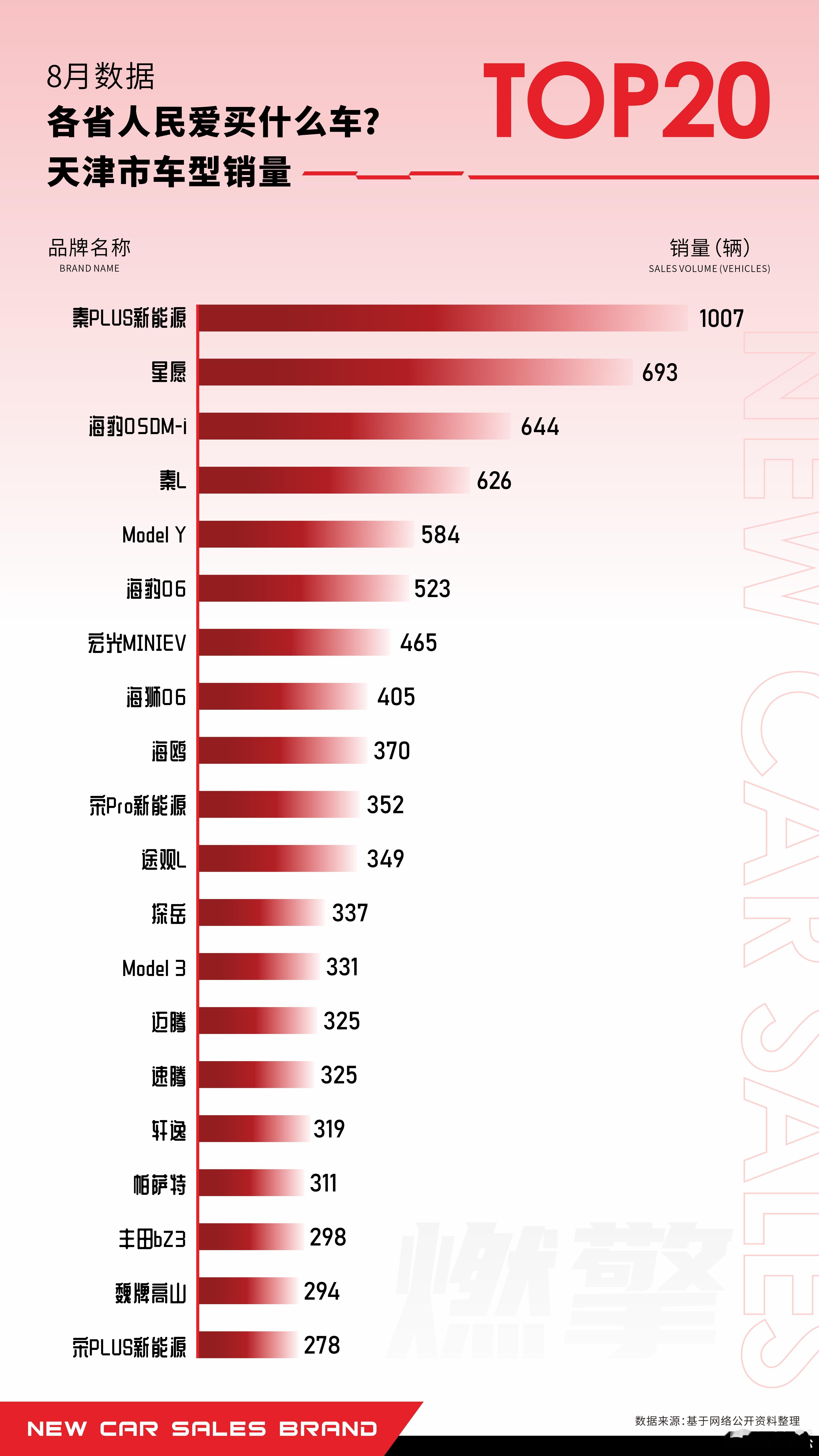 五菱宏光MINIEV(465辆):作为唯一上榜的微型电动车,表明该细分市场在天津依然存在稳定需求。