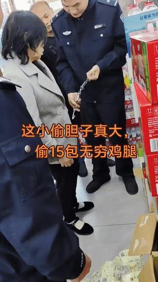 这大妈也太贪心了吧! 她在超市里偷东西,竟然一下子偷了15包鸡腿? 结果被店员当场逮到并报警处理。 真是贪小便宜吃大亏!
