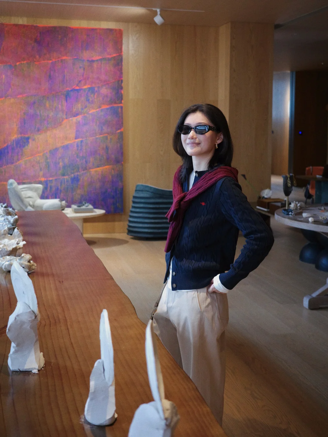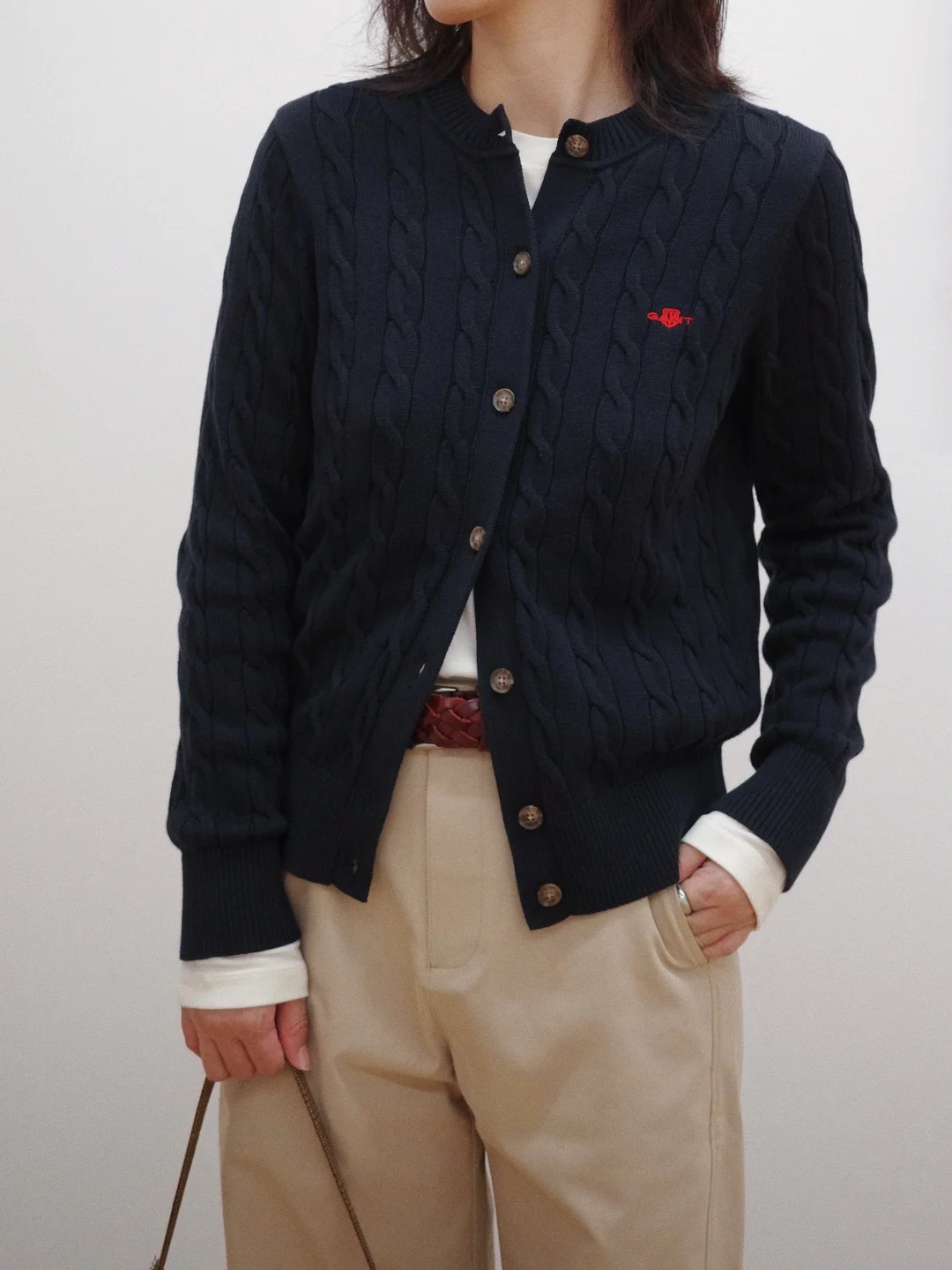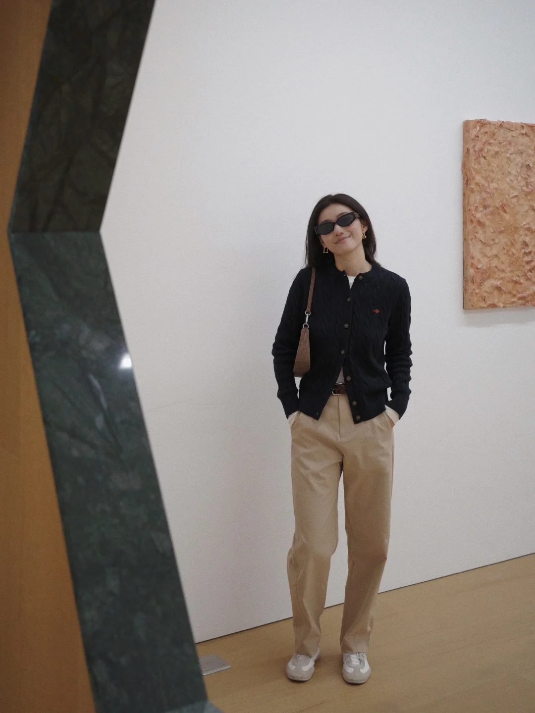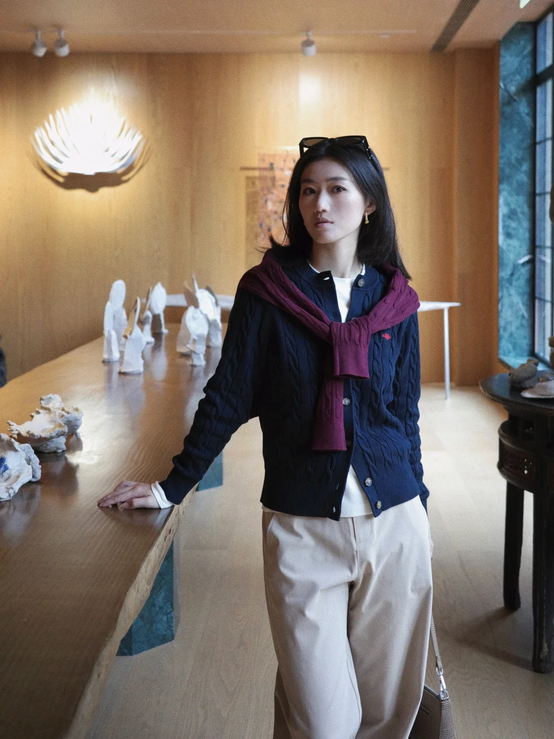 红色logo小刺绣,让这件复古开衫时髦了不止一点~