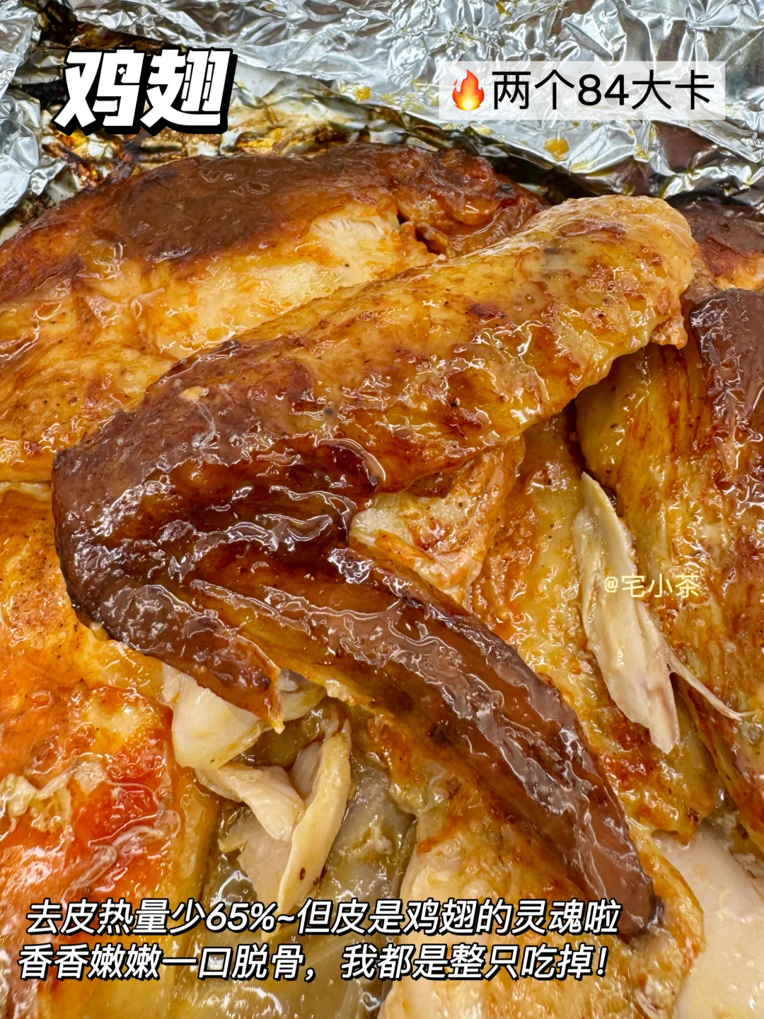 去皮热量少65%~但皮是鸡翅的灵魂,香香嫩嫩一口脱骨,我都是整只吃掉。
