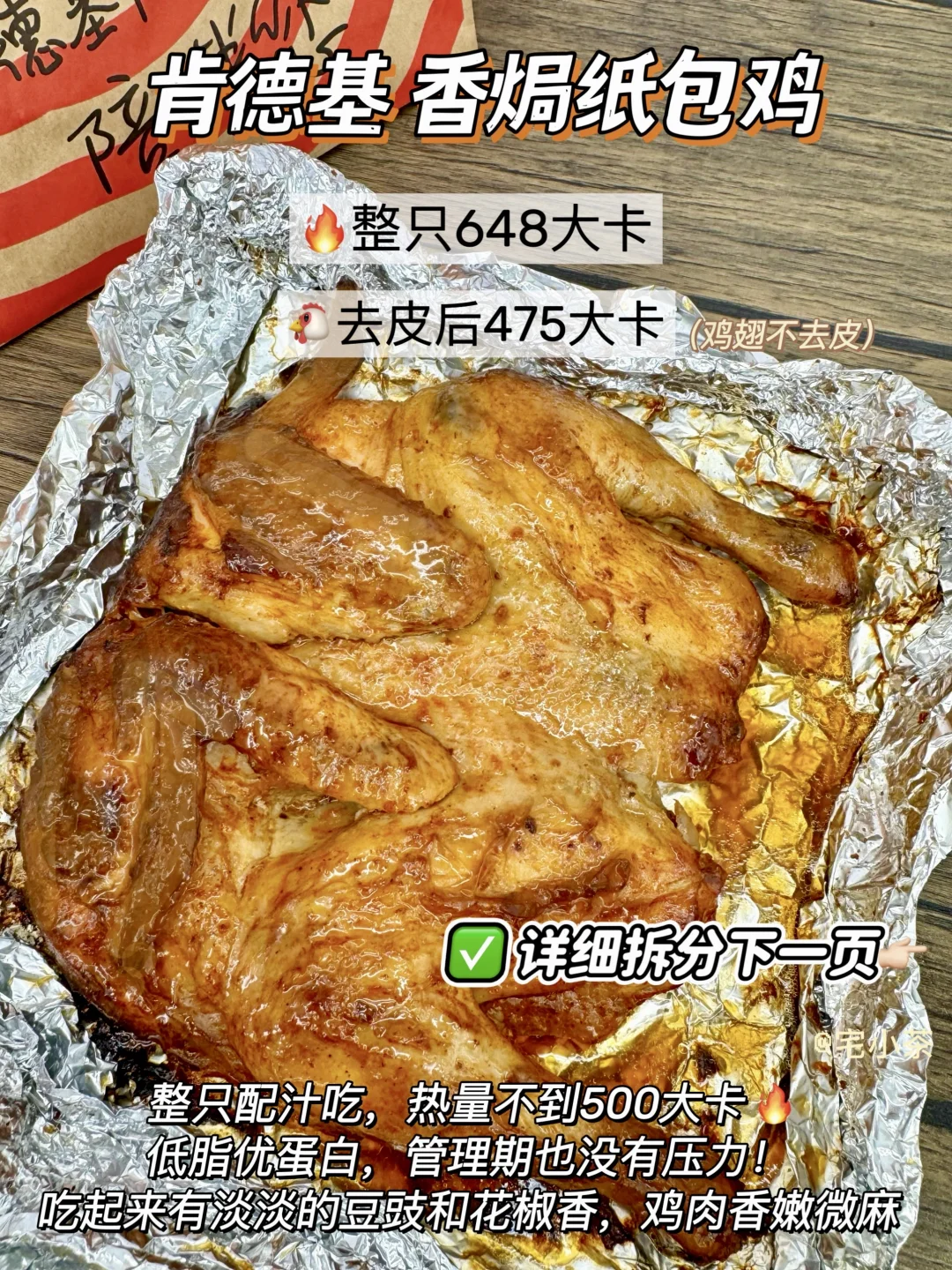 本期尝试的是香焗纸包鸡,无油焗烤,低脂优蛋白,整鸡去皮仅475大卡,吃一整只也没有负担,大家可以放心冲!