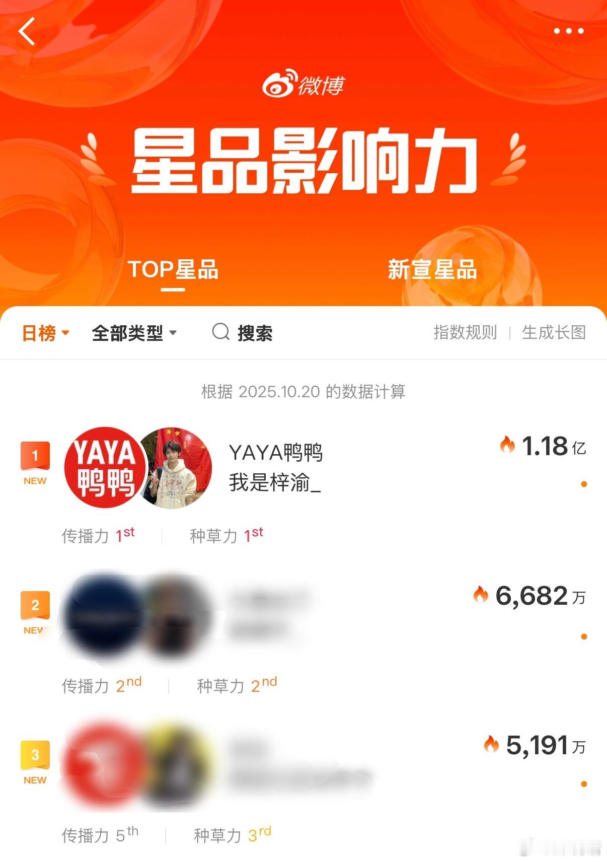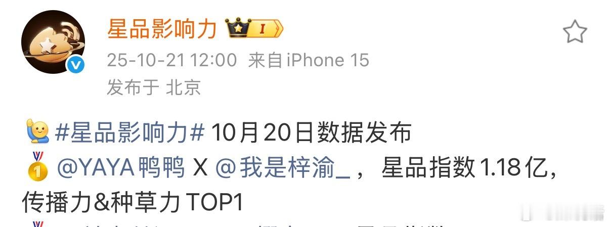 梓渝仅用一天即登顶星品影响力第一,星品指数1.18亿断层领先。鸭鸭周边56秒售罄,代言人的商业影响力好牛[666][666]yaya鸭鸭品牌先锋代言人梓渝梓渝 鸭鸭