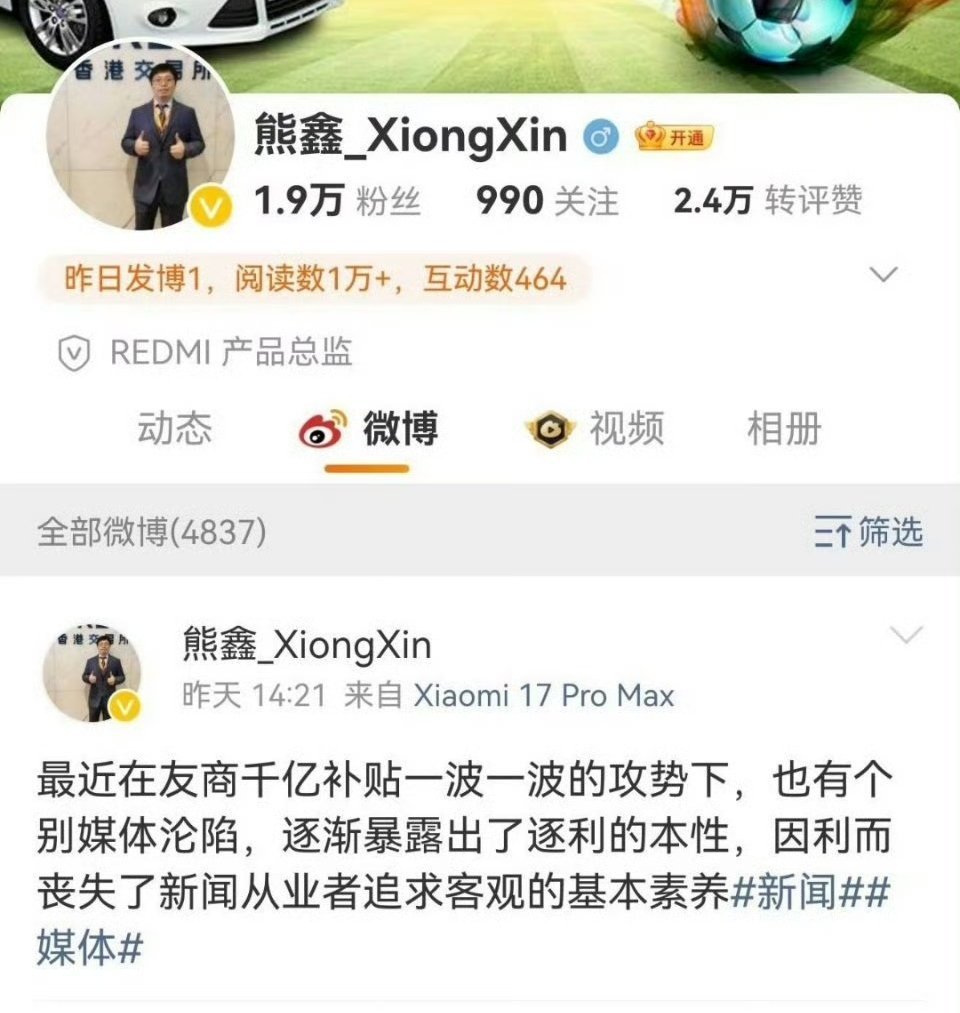 Redmi产品总监:在友商千亿补贴的一波波攻势下,部分媒体展现出了逐利的本性,丧失了媒体的基本素养……