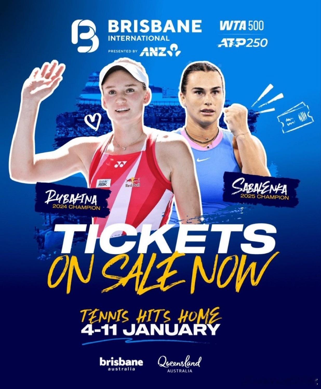 布里斯班官宣明年1-4号到11号的WTA布里斯班500赛将有两位大满贯冠军参加,世界第一萨巴伦卡和莱巴金娜