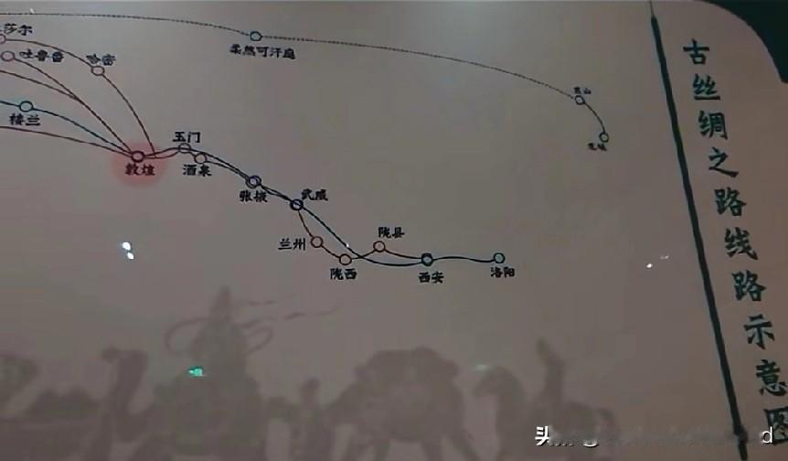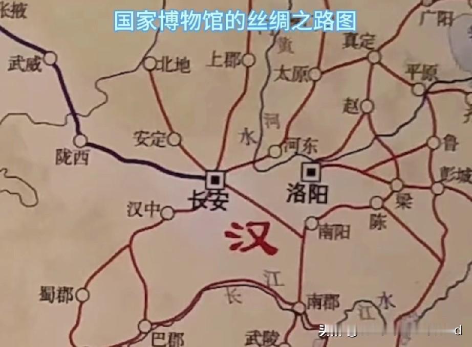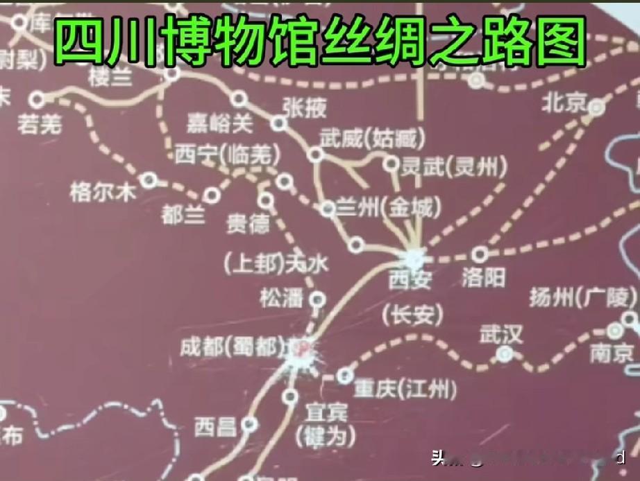 丝绸之路示意图揭示丝绸之路的起点。 最权威的示意图标注, 当属西安国家版本馆(图1), 它以最权威的资料载入史册。 国家博物馆的丝绸之路标注也很清晰, 黑色线代表丝绸之路。(图2) 甘肃博物馆还是比较生动(图3) 四川博物馆类似教科文组织图(4) 辽宁博物馆丝绸之路示意图(图5) 展示了西汉和东汉时期的示意图。 红线代表通常说的丝绸之路, 绿线代表东汉时期的丝绸之路。 如果不轻易区别红线绿线, 很容易认为, 丝绸之路的起点是洛阳。 洛阳博物馆的丝绸之路(图6), 仅仅标注东汉时期的丝绸之路。 只有看丝绸之路简介, 才会发现, 标注的是东汉时期的丝绸之路。 很容易让人认为, 洛阳是丝绸之路的起点。 综上所述, 丝绸之路示意图的标注, 应当以西安国家版本馆为准。 国博馆,甘肃博物馆,四川博物馆, 都符合这个标准。