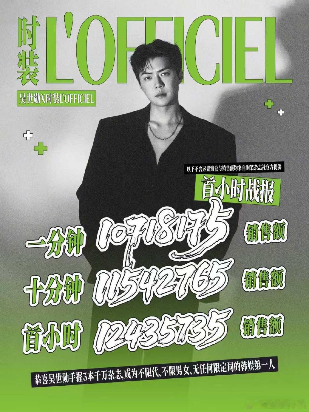 吴世勋退伍后首本杂志销量吴世勋退伍后首本杂志销量破1000万,两年归来仍是王者。吴世勋杂志销量破1000万