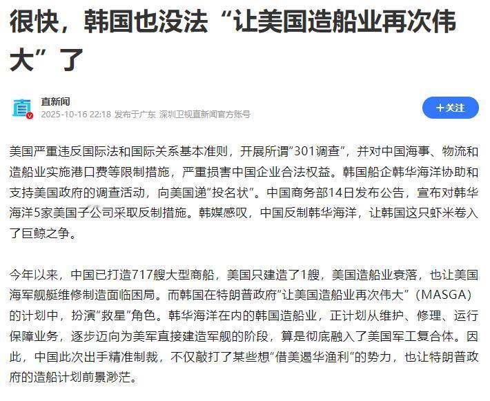 韩国总统李在明下了一步险棋,在没有和中国官方商议的情况下,率先向公众公布了一个与中国相关的重磅消息——韩国造船巨头韩华海洋要跟美国军工绑一块儿了。 2024年底的时候,韩华海洋先花1亿美元买下了美国费城的造船厂,紧接着又砸了50亿美元升级设备,打算把这船厂的年产量从一年造不了1、2艘,直接提到20艘,而且这些船专门给美国海军造。 不光这样,韩华海洋还跟美国海军签了修船的协议,甚至掺和进美国那个“让造船业再次伟大”(MASGA)的计划里,还说要投1500亿美元帮美国把造船业重新搞起来。 整个事件的脉络,听起来就像一部商业大片的剧本。故事的起点,是韩华海洋以1亿美元的价格,将美国费城那座曾经辉煌但略显沉寂的造船厂收入囊中。 这笔交易本身或许只是商业版图上的一次扩张,但紧接着的动作,就彻底暴露了其背后的战略野心。韩华海洋宣布,将再砸下50亿美元,对这座船厂进行脱胎换骨的升级改造。 这不是简单的修修补补,而是要彻底改变它的命运。目标很明确,把过去一年都未必能造出一两艘军舰的产能,一口气拉升到年产20艘的惊人水平。这20艘船,可不是普通的货轮,它们的未来主人,只有一个——美国海军。 这还只是个开始。韩华海洋的胃口显然不止于建造新船。他们迅速与美国海军达成了维修协议,这意味着从建造到维护,韩华的触角将深入美国海军舰队的生命周期管理。 更引人注目的是,他们一头扎进了美国那个声势浩大的“让造船业再次伟大”(MASGA)计划。这名字听着就充满了时代感,背后是美国重振本土制造业、应对全球竞争的迫切渴望。 韩华不仅参与,还承诺要投入高达1500亿美元的巨额资金,帮助美国实现这个宏伟蓝图。这个数字,已经远远超出了普通商业投资的范畴,更像是一种战略结盟的投名状。 李在明选择在这个时间点,用这种方式公布消息,其背后的考量耐人寻味。作为一国领导人,他不可能不清楚,这样一个深度捆绑美国军工体系的举动,必然会牵动周边最敏感的神经。 尤其是在没有与最大贸易伙伴中国进行任何事前沟通的情况下,这种单方面的“官宣”,无疑在外交层面投下了一颗震撼弹。 这步棋,赌的是美国的战略回报,押注的是韩国在全球产业链中向上攀升的决心,但同时也可能让韩国在复杂的地缘经济格局中,面临前所未有的压力。 韩华海洋此举,也折射出韩国企业界的一种新动向。他们不再满足于仅仅作为世界工厂的代工者,或是区域经济的重要参与者,而是渴望在全球最高端的产业,比如国防军工领域,占据一席之地。 通过收购和升级美国的造船厂,韩华不仅获得了技术和市场,更重要的是,它将自己的命运与美国的国家安全战略紧紧地捆绑在了一起。 这种捆绑,带来的可能是长期的订单和稳定的技术合作,但也意味着,未来任何风吹草动,韩华都将站在风暴的第一线。 费城造船厂的机器即将重新轰鸣,焊花将照亮新的船体。这看似是一个商业故事的圆满开端,但其掀起的波澜,才刚刚开始扩散。 当韩国的资本和技术,成为美国“让造船业再次伟大”计划的关键推手时,整个区域的平衡似乎正在被悄然改写。 这笔账,究竟该怎么算?是利大于弊的战略远见,还是一场风险难测的豪赌?或许,只有时间能给出最终的答案,而在这之前,我们每个人都可以有自己的看法。