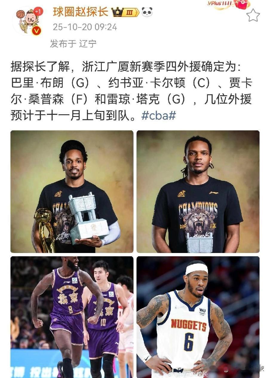 广厦确定四外援!卫冕成功概率很大 近日据球圈赵探长报道,卫冕冠军广厦队已经确定